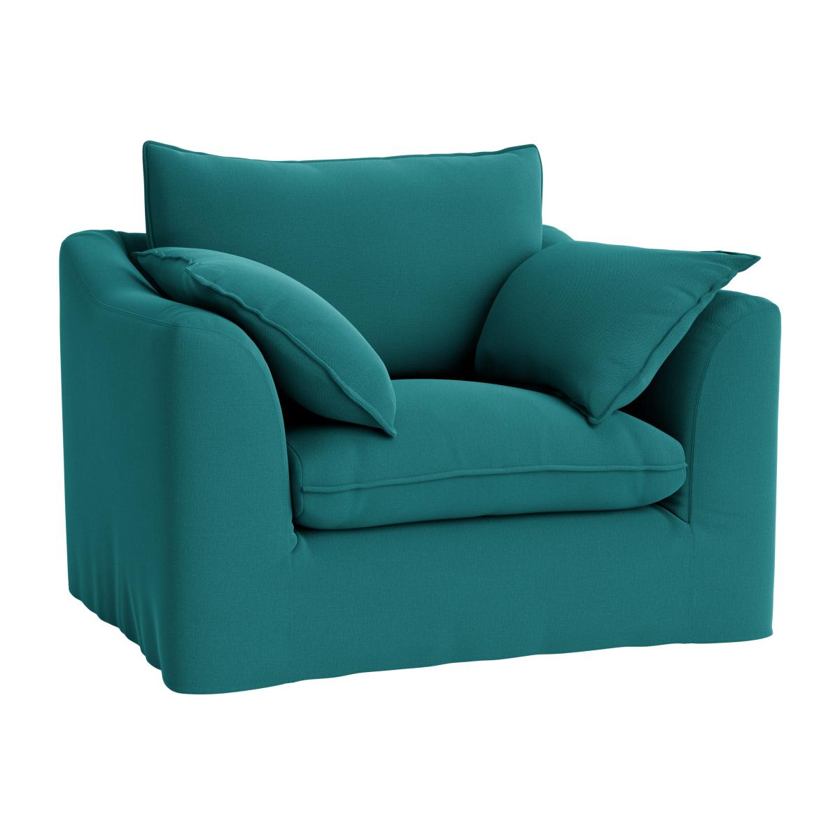 I love this slipcover for its versatility and ease of styling; it’s great for protecting your armchair while updating the look effortlessly. The rich teal shade lends itself well to both contemporary and eclectic interiors, adding a pop of colour without overpowering the space. It works particularly well in casual living rooms or family spaces where comfort and practicality are key. To keep the look fresh, pair it with neutral tones or incorporate accent cushions and throws in complementary colours or textures, such as soft neutrals or patterned fabrics. This cover is a practical choice that can easily transition through different decor updates, making it both a stylish and functional addition.