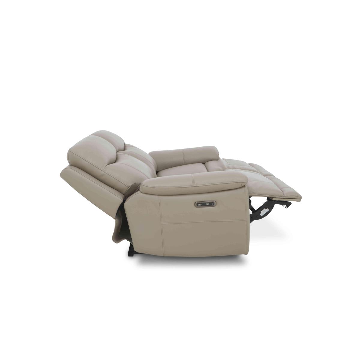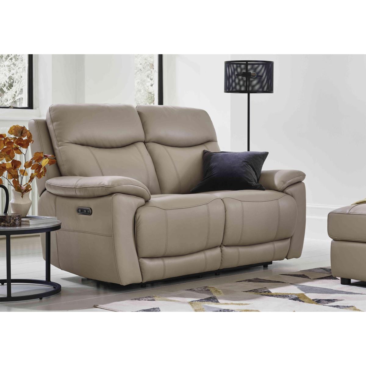 Comfort, style and value – our Sloane range is the original triple threat. With power recliners, pocket sprung seat interiors, fibre-filled back cushions and wide well-padded arms, you’ll enjoy superb comfort and excellent support. Contemporary in style with generous curves and invitingly deep seats, the range’s sofas, armchairs and footstools fit effortlessly into all design and decor schemes, plus they’re available in your choice of 100% leather upholstery and soft fabric in a selection of colours. And all that for a really incredible price. The Sloane range is handmade exclusively for Furniture Village. Handmade just for Furniture Village, this inviting two-seater leather power recliner sofa delivers so much style and comfort for a really incredible price. Why you'll love it You’ll love everything about this 2-seater leather power recliner sofa. Comfort, style and value – what more could you wish for? Seat cushions are filled with pocket springs for the ultimate in comfort and support. The power recliners make it even easier to relax. 100% leather upholstery in a choice of fashionable colours. This sofa is also available without recliners. Handmade exclusively for Furniture Village. This 2-seater leather power recliner sofa is part of our Sloane range. What you need to know Medium comfort level. Seat suspension: sinuous spring. Seat cushioning: pocket springs. Cushioning is fixed. Back support: webbing. Back cushioning: fibre. Cushioning is fixed. Arm cushioning: foam and Dacron. Cushioning is fixed. To maintain back cushion fullness, be sure to plump daily. Please allow time for new recliners to ease. Minor gaps are necessary to ensure ease of recliner motion and may be exaggerated depending on floor type. Leather has unique marks and characteristics with variation in colour and texture. Leather softens with use. Smoothing the tops of leather cushions prevents signs of visual comfort. Please read our upholstery care guide for more advice.