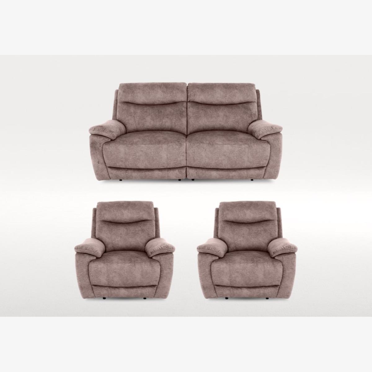 Comfort, style and value – our Sloane range is the original triple threat. With power recliners, pocket sprung seat interiors, fibre-filled back cushions and wide well-padded arms, you’ll enjoy superb comfort and excellent support. Contemporary in style with generous curves and invitingly deep seats, the range’s sofas, armchairs and footstools fit effortlessly into all design and decor schemes, plus they’re available in your choice of 100% leather upholstery and soft fabric in a selection of colours. And all that for a really incredible price. The Sloane range is handmade exclusively for Furniture Village. Turn your living room into a haven of relaxation with this power recliner set comprising a three-seater sofa and two armchairs. Each piece is beautifully upholstered in a charcoal grey marbled fabric. Why you’ll love it This power recliner sofa and 2 armchairs set promises even more relaxation. Comfort, style and value – what more could you wish for? Smooth power recliners make it even easier to unwind. Seat cushions are filled with pocket springs for the ultimate in comfort and support. Beautifully upholstered in a charcoal grey marbled fabric. Handmade exclusively for Furniture Village. This 3-seater power recliner sofa and 2 armchairs set is part of our Sloane range. What you need to know Medium comfort level. Seat suspension: sinuous spring. Seat cushioning: pocket springs. Cushioning is fixed. Back support: webbing. Back cushioning: fibre. Cushioning is fixed. Arm cushioning: foam and Dacron. Cushioning is fixed. To maintain back cushion fullness, be sure to plump daily. Please allow time for new recliners to ease. Minor gaps are necessary to ensure ease of recliner motion and may be exaggerated depending on floor type. Some fabrics can show wear on areas of more use or in direct sunlight. Flattening and shading of heavy wear areas on pile fabrics is unavoidable. Clean regularly using a soft brush or vacuum with the curtain attachment. Deal with any spills promptly. Professional cleaning advised for oil- and grease-based stains. Please read our upholstery care guide for more advice. Item code: SLOABUN-3-001