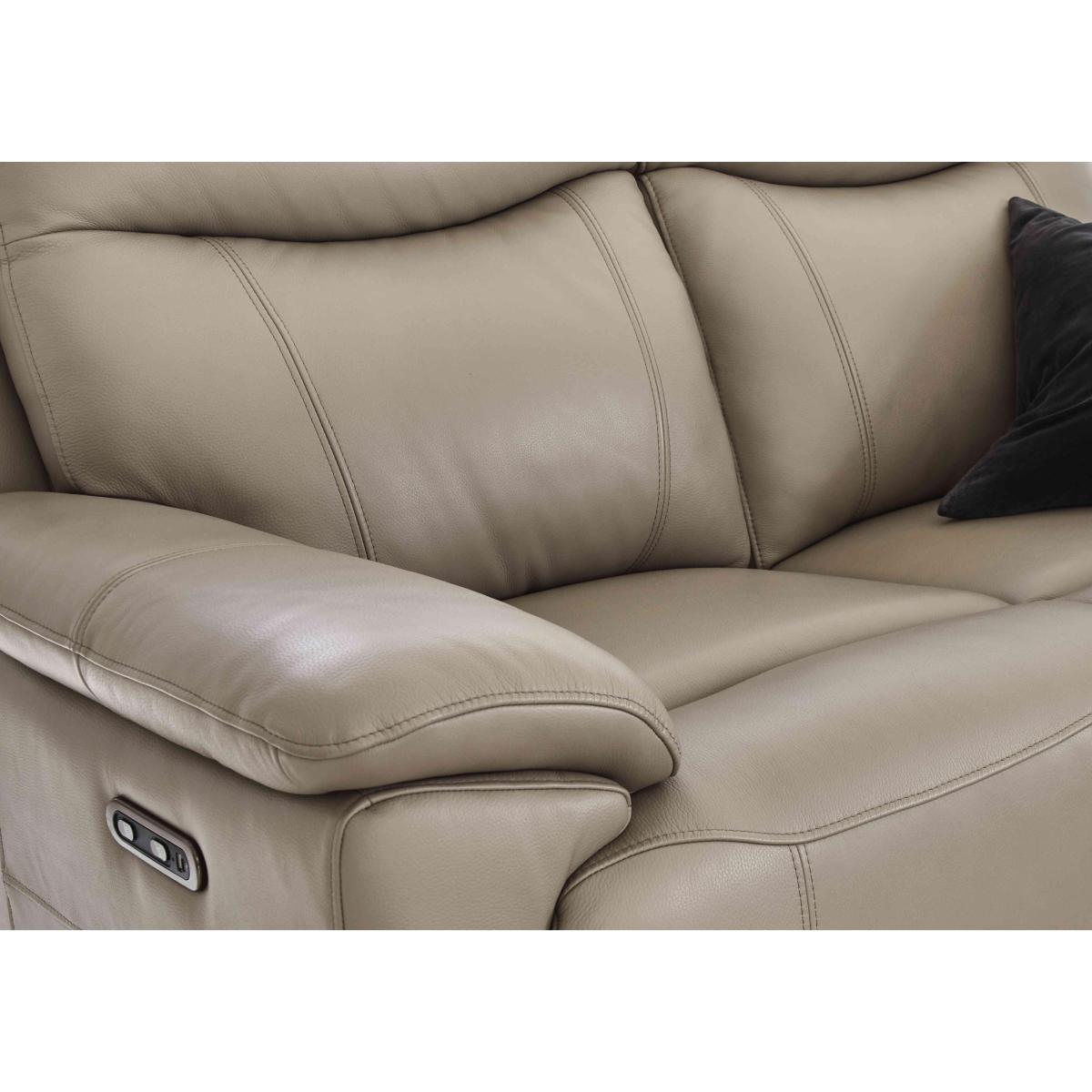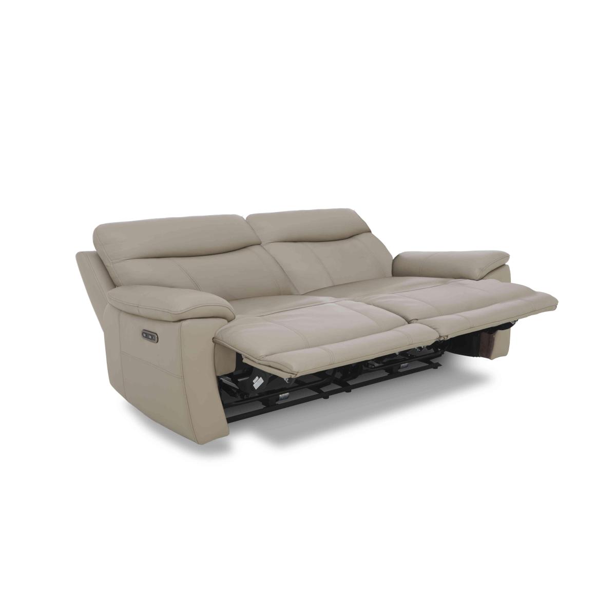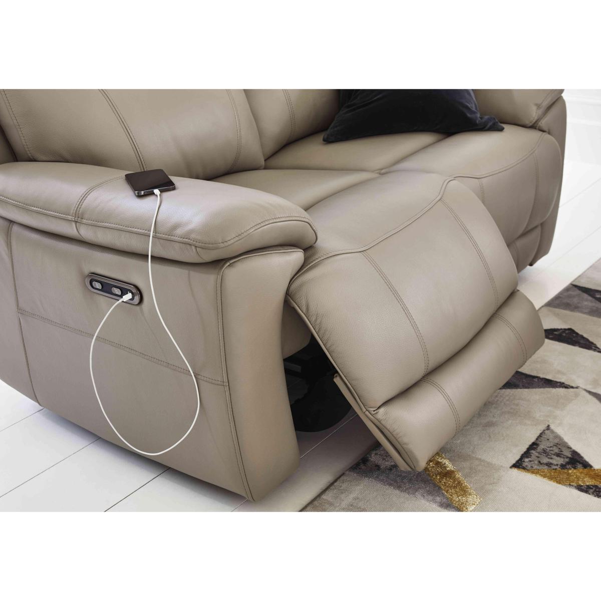 Comfort, style and value – our Sloane range is the original triple threat. With power recliners, pocket sprung seat interiors, fibre-filled back cushions and wide well-padded arms, you’ll enjoy superb comfort and excellent support. Contemporary in style with generous curves and invitingly deep seats, the range’s sofas, armchairs and footstools fit effortlessly into all design and decor schemes, plus they’re available in your choice of 100% leather upholstery and soft fabric in a selection of colours. And all that for a really incredible price. The Sloane range is handmade exclusively for Furniture Village. With pocket spring-filled seat cushions and smooth power recliners, this three-seater leather sofa promises real relaxation. Handmade. Why you'll love it Get more sofa for your money with this 3-seater leather power recliner sofa. Comfort, style and value – what more could you wish for? Seat cushions are filled with pocket springs for the ultimate in comfort and support. The 2 power recliners make it even easier to relax. 100% leather upholstery in a choice of fashionable colours. This sofa is also available without recliners. Handmade exclusively for Furniture Village. This 3-seater leather power recliner sofa is part of our Sloane range. What you need to know Medium comfort level. Seat suspension: sinuous spring. Seat cushioning: pocket springs. Cushioning is fixed. Back support: webbing. Back cushioning: fibre. Cushioning is fixed. Arm cushioning: foam and Dacron. Cushioning is fixed. To maintain back cushion fullness, be sure to plump daily. Please allow time for new recliners to ease. Minor gaps are necessary to ensure ease of recliner motion and may be exaggerated depending on floor type. Leather has unique marks and characteristics with variation in colour and texture. Leather softens with use. Smoothing the tops of leather cushions prevents signs of visual comfort. Please read our upholstery care guide for more advice.
