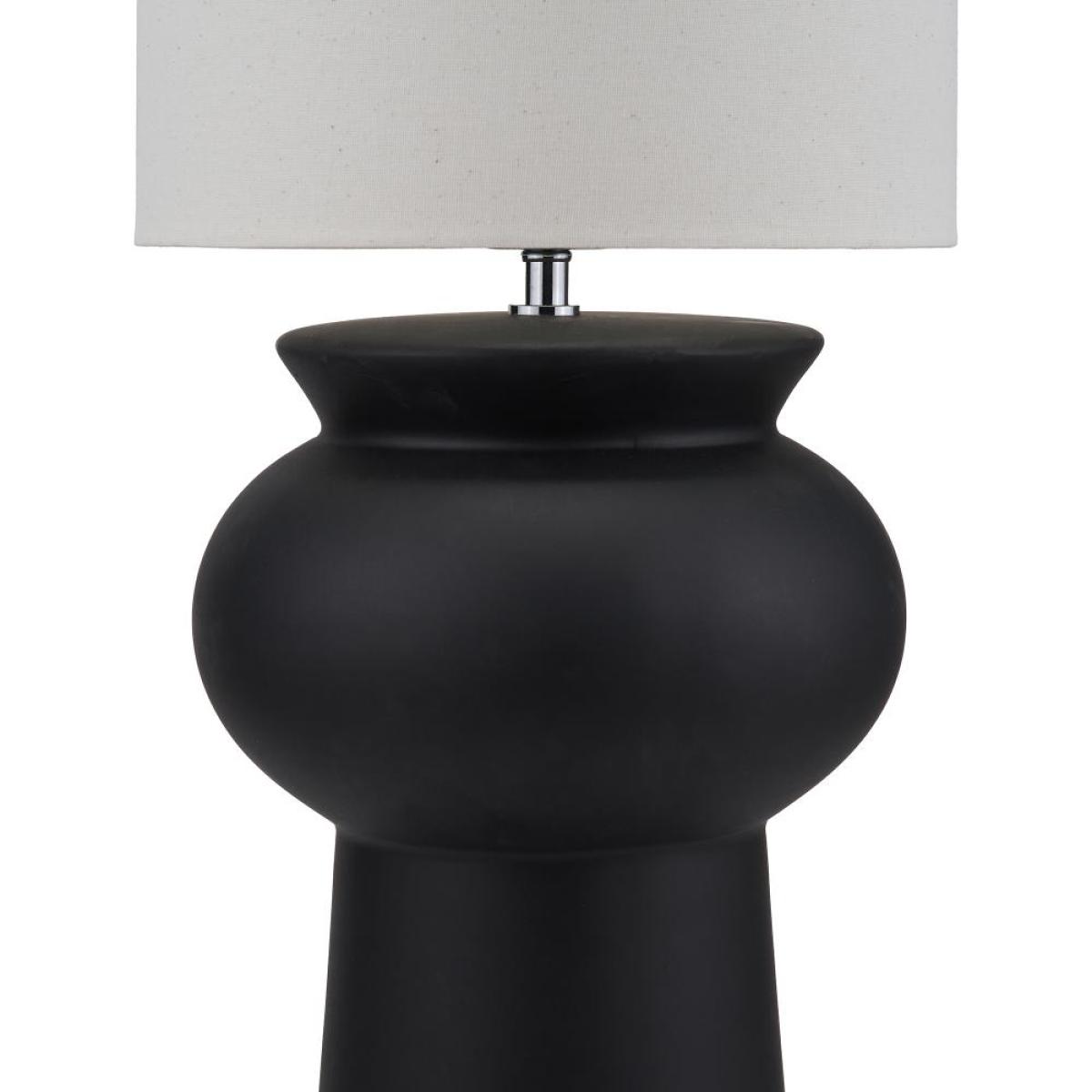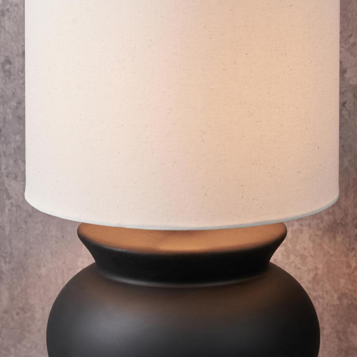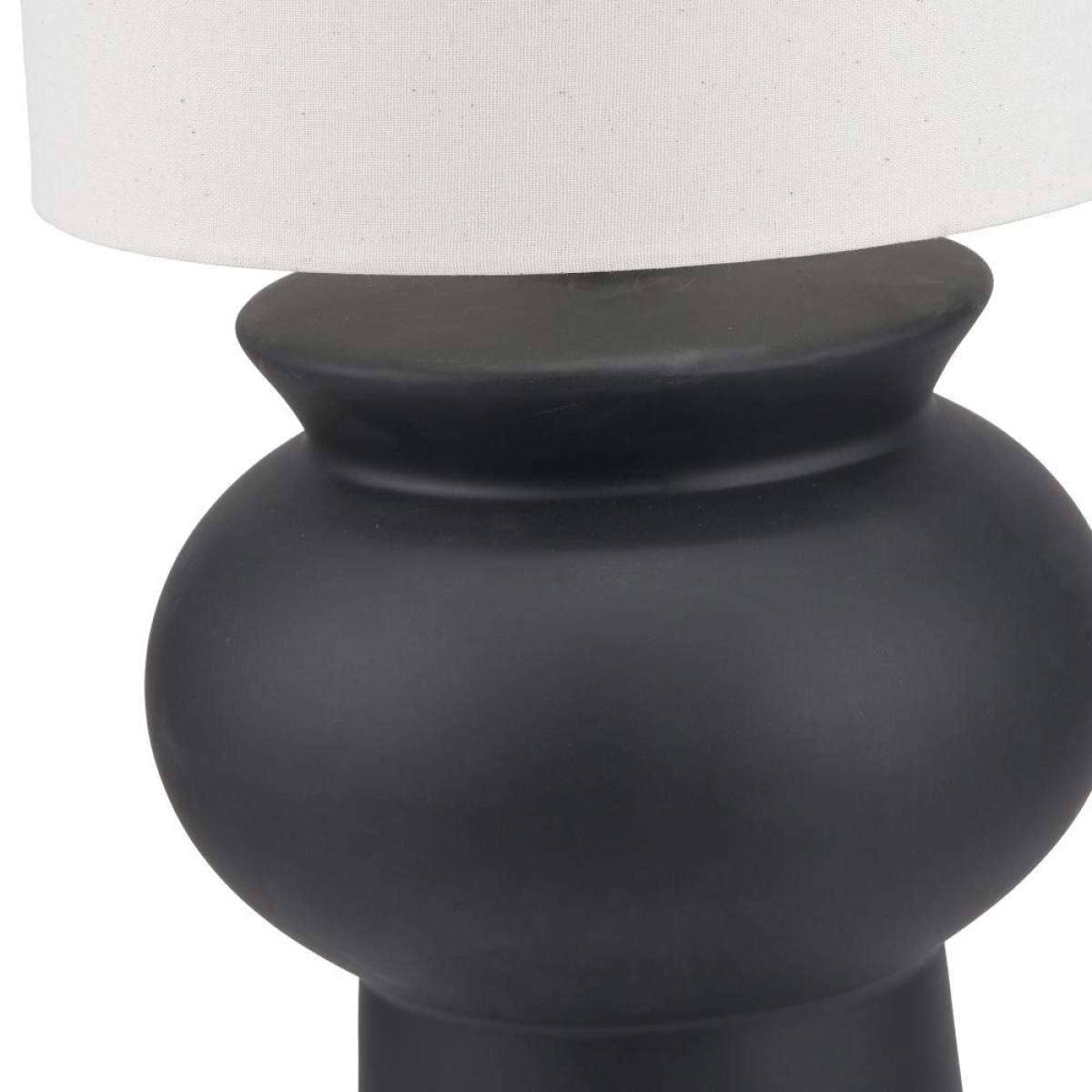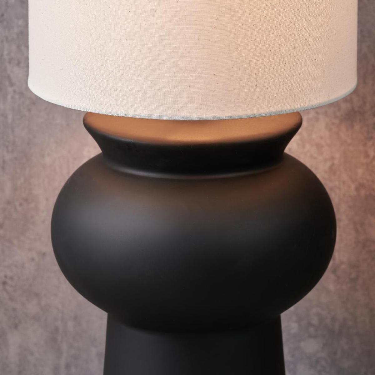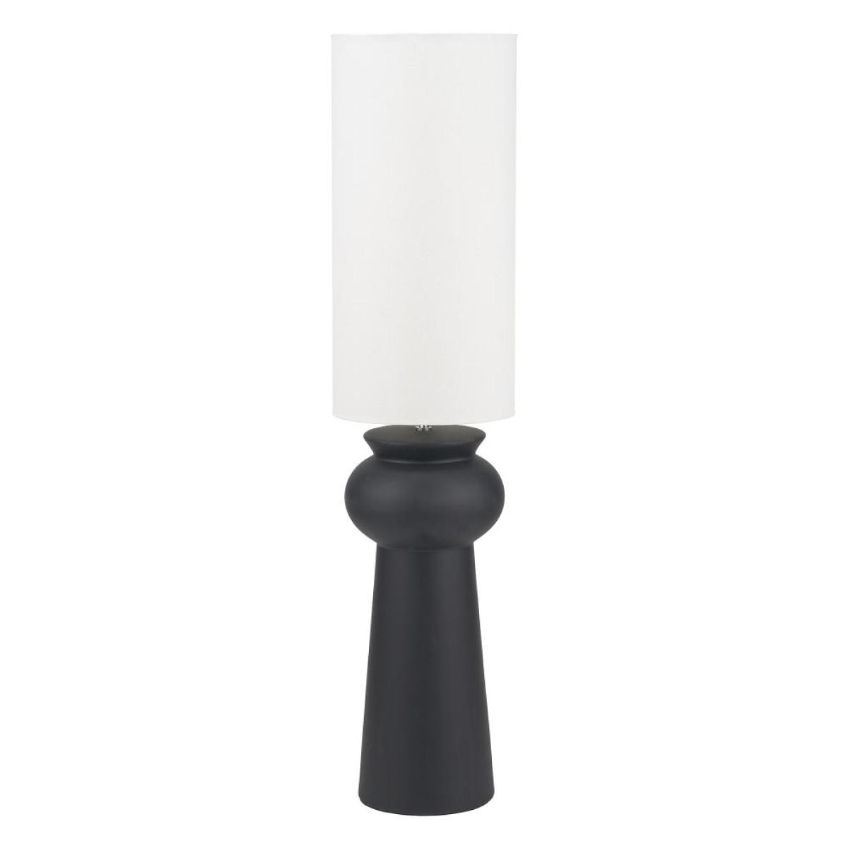 Make a bold style statement with the , a striking piece that fuses contemporary form with timeless monochrome appeal. Featuring a sculptural matte black base with unique geometric shapes—combining a rounded midsection with a tapered lower pedestal—this lamp adds dramatic flair and architectural interest to any room. A tall, crisp white fabric drum shade provides a beautiful contrast, softening the light and creating a warm, inviting ambiance perfect for living rooms, bedrooms, or entryways. The Sloane’s elongated design makes it ideal for adding height and visual impact. Pair it with the matching Sloane Black and White Table Lamp for a cohesive, designer-inspired lighting scheme throughout your home.
