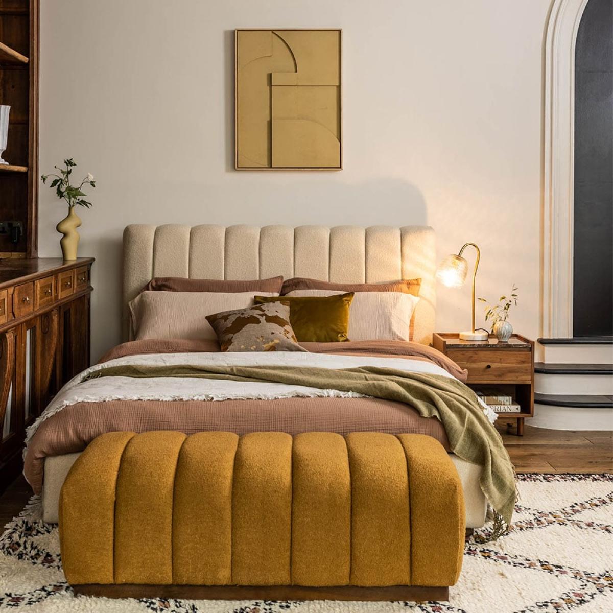 I’m a big fan of the Sloane bed in natural boucle because its softly channelled headboard adds subtle texture without overpowering the room. The neutral hue makes it a great fit for Scandinavian-inspired schemes, modern minimalism or even a warm, layered boho look. To style it practically, layer in a chunky wool throw and mix velvet or linen cushions in muted greens and terracotta for a cosy but sophisticated feel. Pair with simple wooden or metal-framed bedside tables and a low-pile rug to keep the focus on the bed’s elegant curves. The boucle fabric is durable and easy to spot-clean, so it suits both low-maintenance homes and more lived-in spaces.