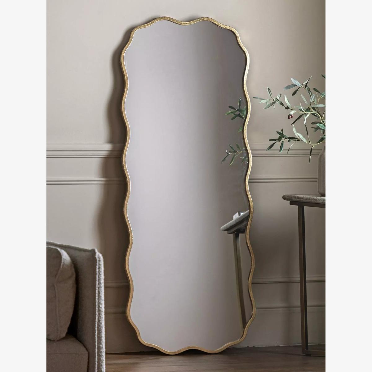Add a dose of flair into your decor with our quirky round wavy edge leaner metal mirror in a rustic gold finish. Crafted from durable metal, this mirror combines a bold, unique design with high-quality craftsmanship. Add a dose of flair into your decor with our quirky round wavy edge leaner metal mirror in a rustic gold finish. Crafted from durable metal, this mirror combines a bold, unique design with high-quality craftsmanship.