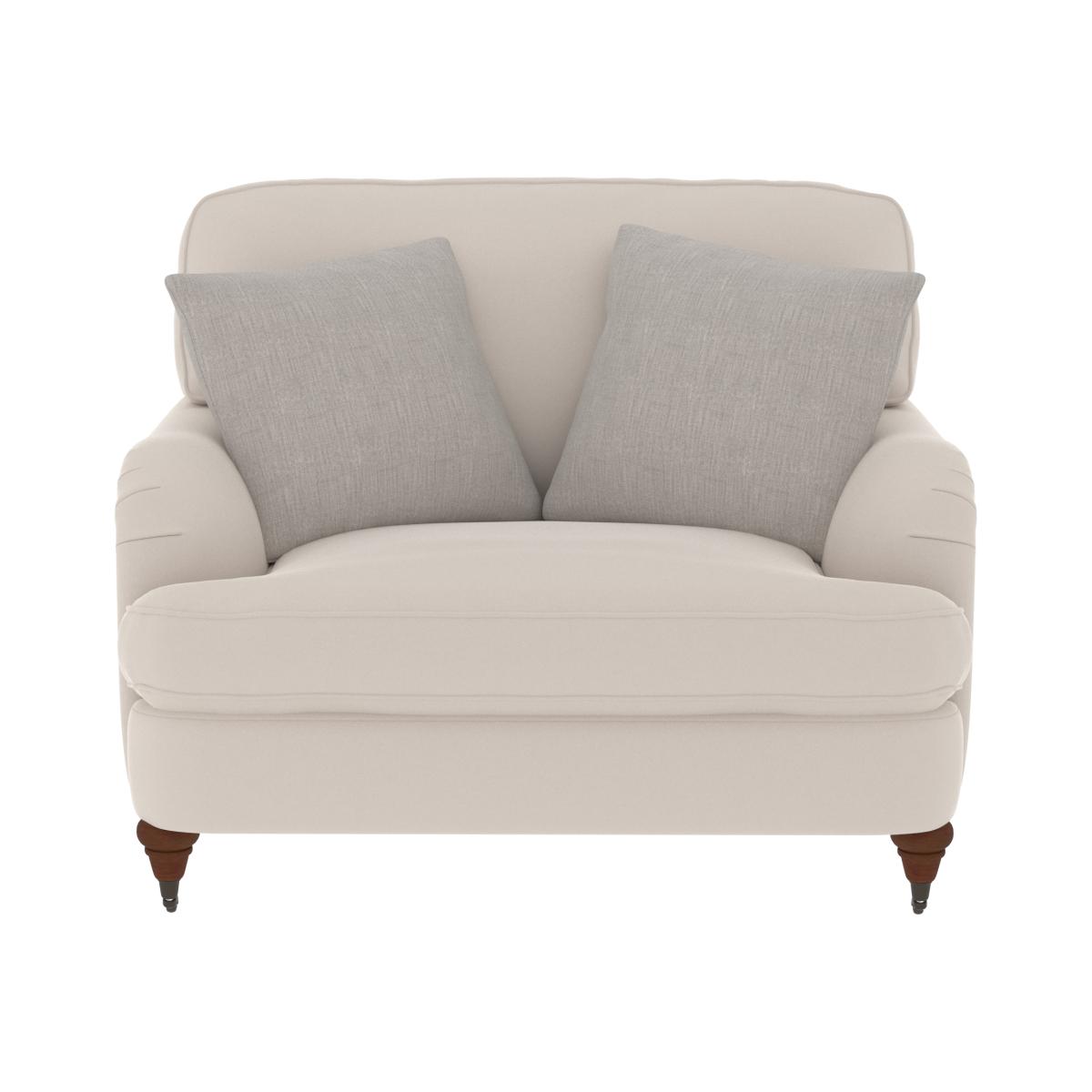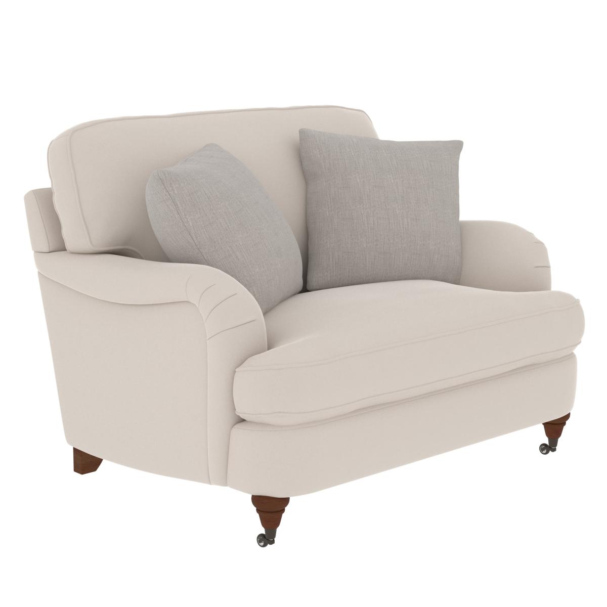 Elegant and comfortable with beautifully shaped low arms and back cushions, the Sloane loveseat will compliment a range of different living spaces. With inviting deep fibre filled seat cushions resting upon a sprung unit, the Sloane is not only stunning but is the ultimate for lasting comfort and support. This English classic is perfectly finished with front turned wooden feet with charming caster bottoms, sure to bring some drawing room sophistication to your living space.