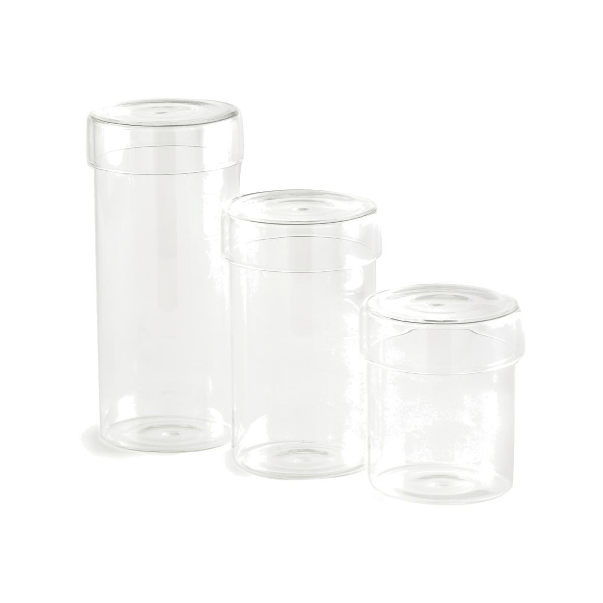 Made entirely from glass, these 3 storage jars will protect and display your sweets, cakes, cereals or anything else you might want to store with originality and style. Product details:. Made of glass. Pack of 3. Care advice: Not suitable for dishwasher or microwave use. Sizes:. Small: Diameter 10 x Height 12.5 cm, 900 ml. Mid-height: Diameter 10 x Height 17.5cm, 1300 ml. Large: Diameter 10 x Height 22.5cm, 1700 ml. Shop our full tableware collection online.