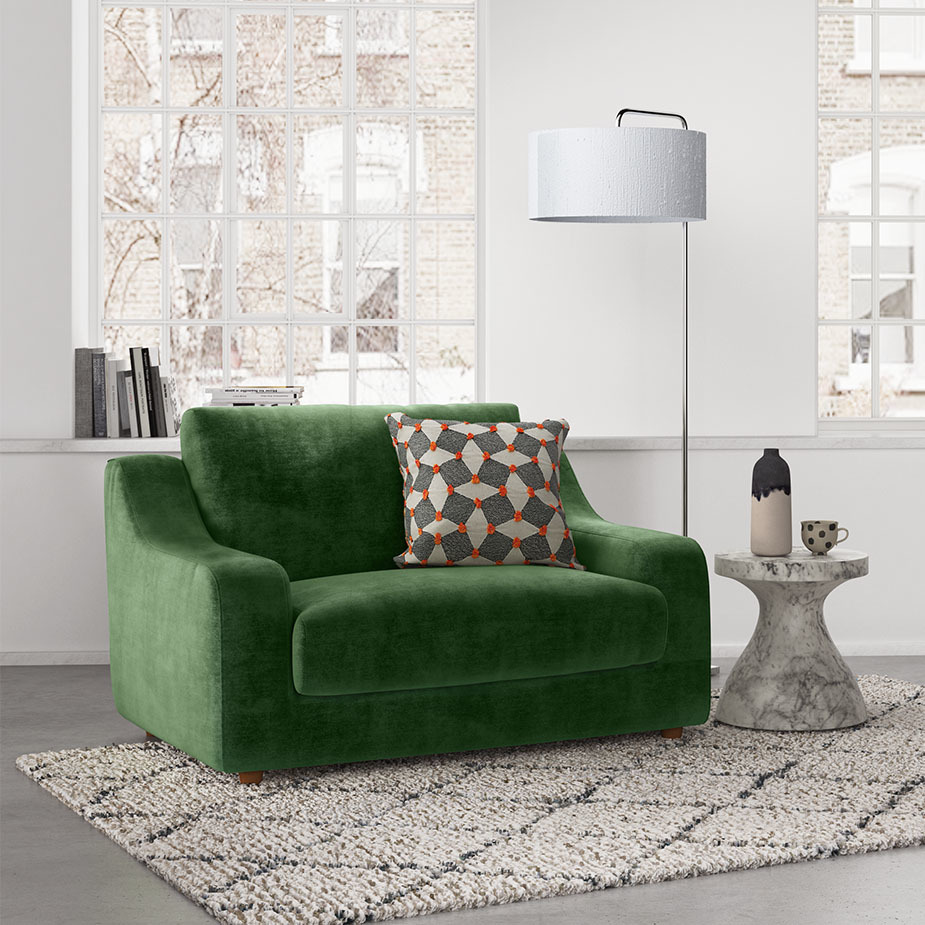 Made in Italy, the Slope black and white italian woven loveseat sofa has a curvaceous shape and low, wide, sweeping arms that encourage relaxed lounging. The sofa's seamless seat cushions have a foam core, topped with a feather and fibre mix for a comfortable sit that can withstand the rigours of everyday life, together with soft feather and fibre back cushions and feather-filled lumbar cushions. The low arms of this generously proportioned sofa allows easier access into your home – please check our Sofa Measuring Guide to ensure it’s the perfect fit. Exclusive to Habitat and available in a choice of fabrics, colours and sizes, the Slope sofa sits close to the floor on hidden stained-beech legs.
