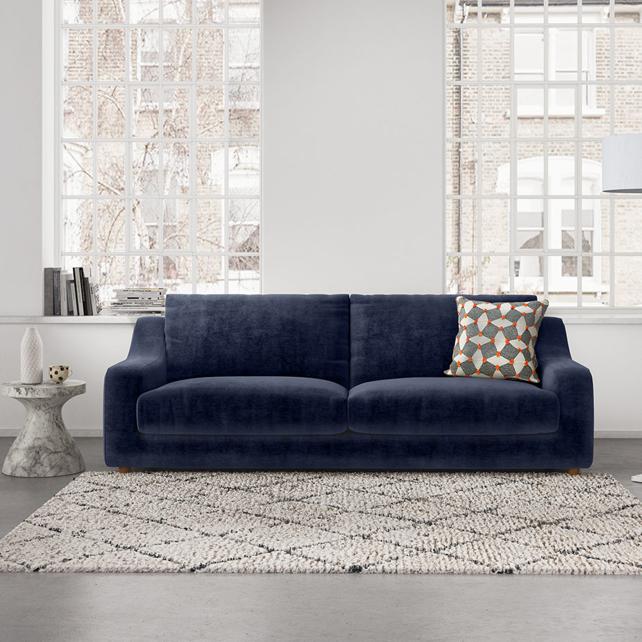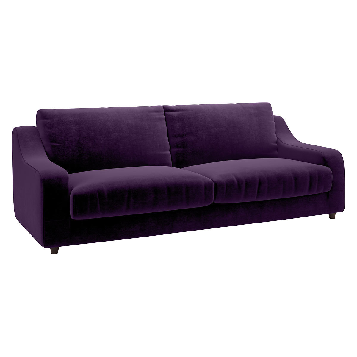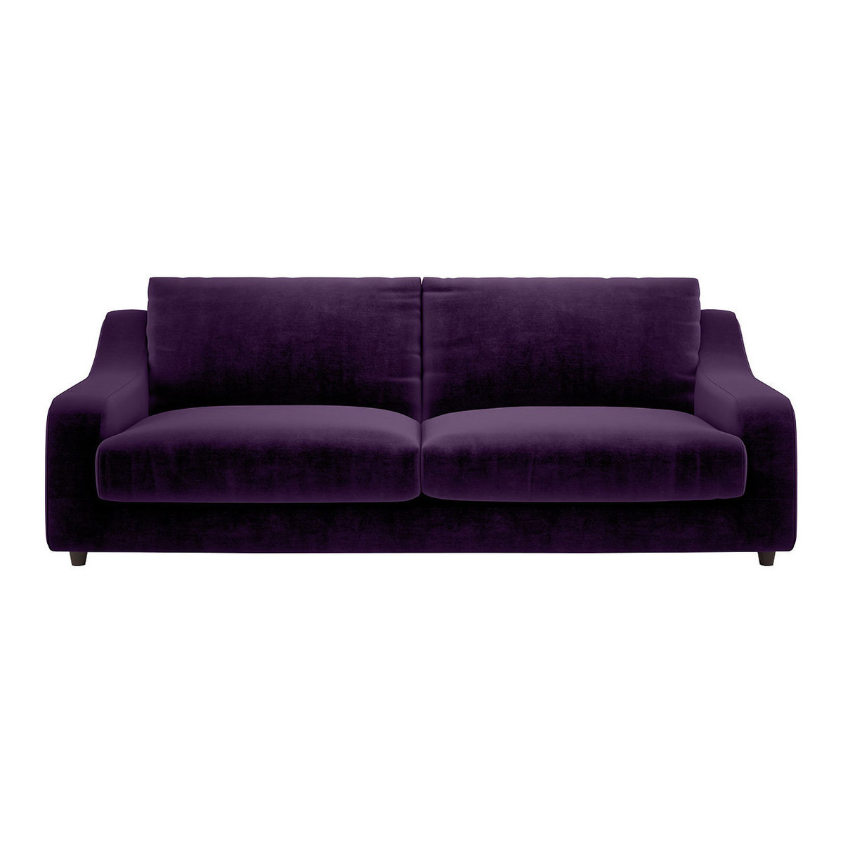 Made in Italy, the Slope purple velvet 3 seat sofa has a curvaceous shape and low, wide, sweeping arms that encourage relaxed lounging. The sofa's seamless seat cushions have a foam core, topped with a feather and fibre mix for a comfortable sit that can withstand the rigours of everyday life, together with soft feather and fibre back cushions and feather-filled lumbar cushions. The low arms of this generously proportioned sofa allows easier access into your home – please check our Sofa Measuring Guide to ensure it’s the perfect fit. Exclusive to Habitat and available in a choice of fabrics, colours and sizes, the Slope sofa sits close to the floor on hidden stained-beech legs.