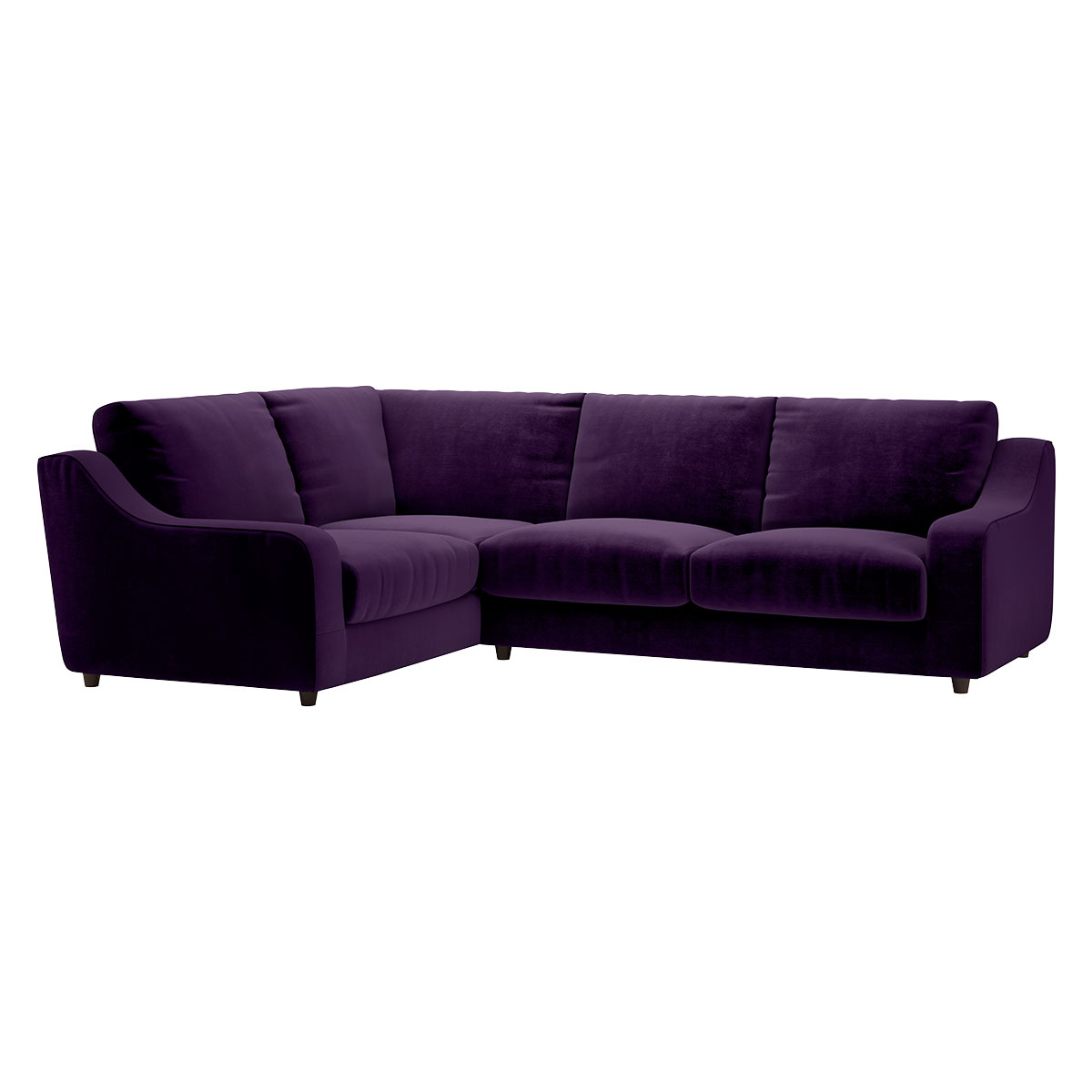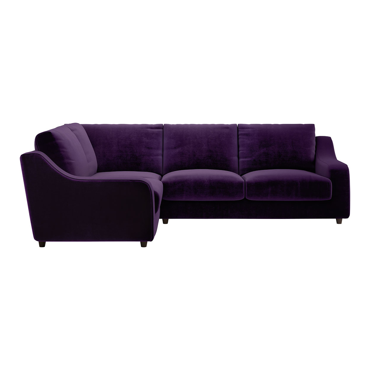 Made in Italy, the Slope purple velvet corner sofa has a curvaceous shape and low, wide, sweeping arms that encourage relaxed lounging. The sofa's seamless seat cushions have a foam core, topped with a feather and fibre mix for a comfortable sit that can withstand the rigours of everyday life, together with soft feather and fibre back cushions and feather-filled lumbar cushions. The low arms of this generously proportioned sofa allows easier access into your home – please check our Sofa Measuring Guide to ensure it’s the perfect fit. Exclusive to Habitat and available in a choice of fabrics, colours and sizes, the Slope sofa sits close to the floor on hidden stained-beech legs.