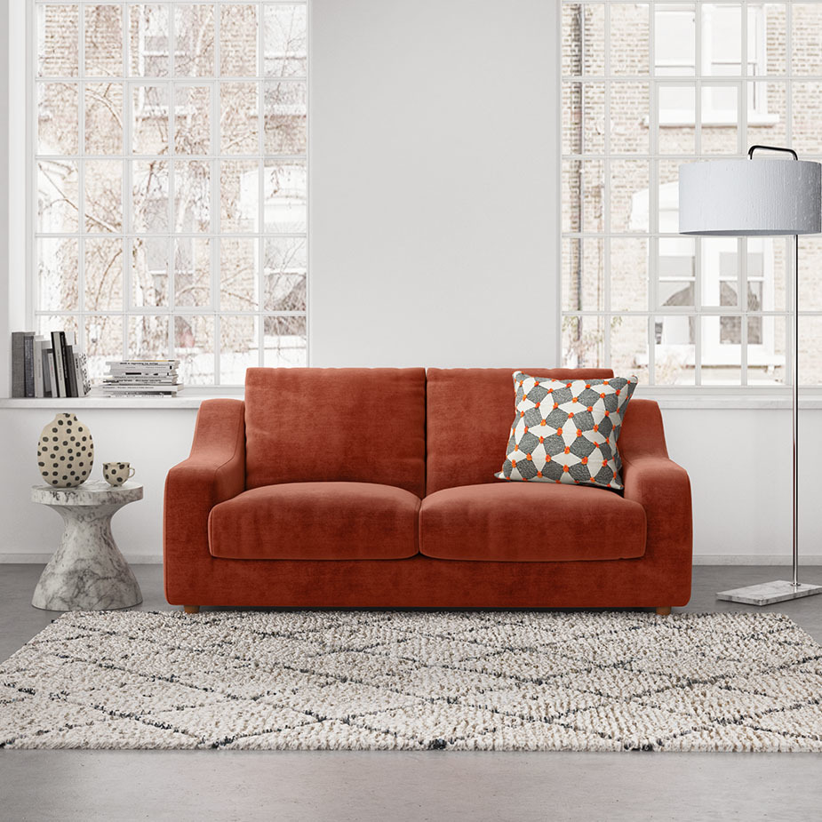 Made in Italy, the Slope teal wool tweed 2 seat sofa has a curvaceous shape and low, wide, sweeping arms that encourage relaxed lounging. The sofa's seamless seat cushions have a foam core, topped with a feather and fibre mix for a comfortable sit that can withstand the rigours of everyday life, together with soft feather and fibre back cushions and feather-filled lumbar cushions. The low arms of this generously proportioned sofa allows easier access into your home – please check our Sofa Measuring Guide to ensure it’s the perfect fit. Exclusive to Habitat and available in a choice of fabrics, colours and sizes, the Slope sofa sits close to the floor on hidden stained-beech legs.