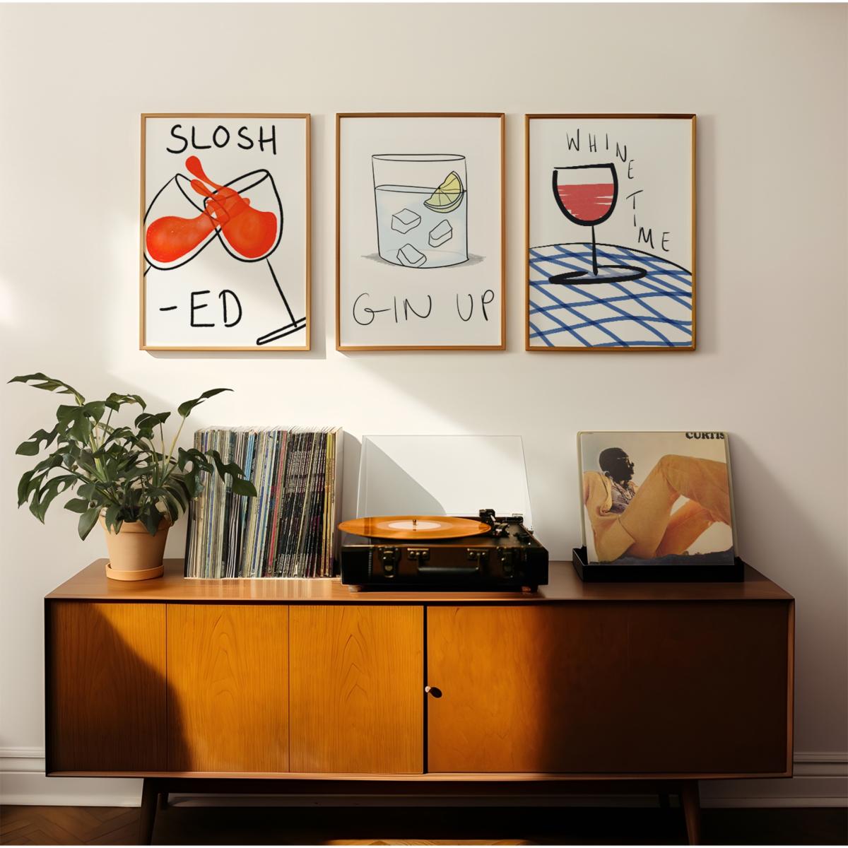 I love this print because of its playful and modern take on classic cocktail imagery, making it a fun focal point in a variety of interiors. It works particularly well in contemporary or eclectic spaces, where it can add a dash of colour and personality. For styling tips, consider pairing it with minimalist frames and neutral backgrounds to let the print stand out, or mix it with other bold artwork for a more lively gallery wall. This piece also suits a bar area, kitchen, or casual lounge, offering a touch of humour while maintaining visual interest. Keep the surrounding decor simple to allow the vibrant colours and quirky illustration to do all the talking.