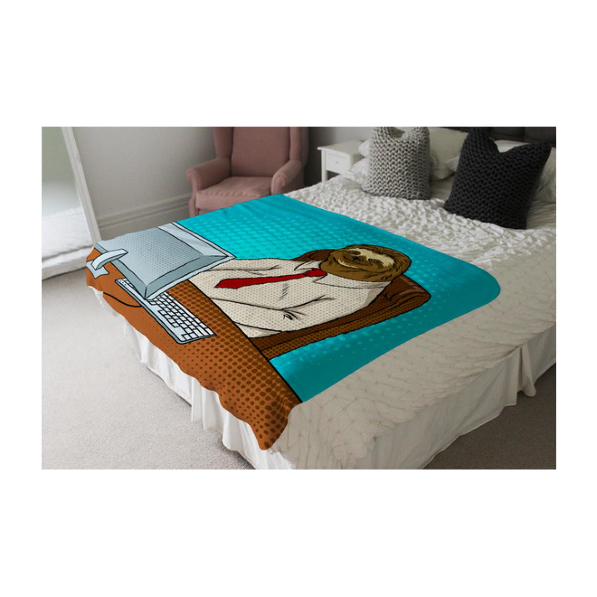 Sloth Animal Office Worker Pop Art Retro Designer Blanket - Blue
