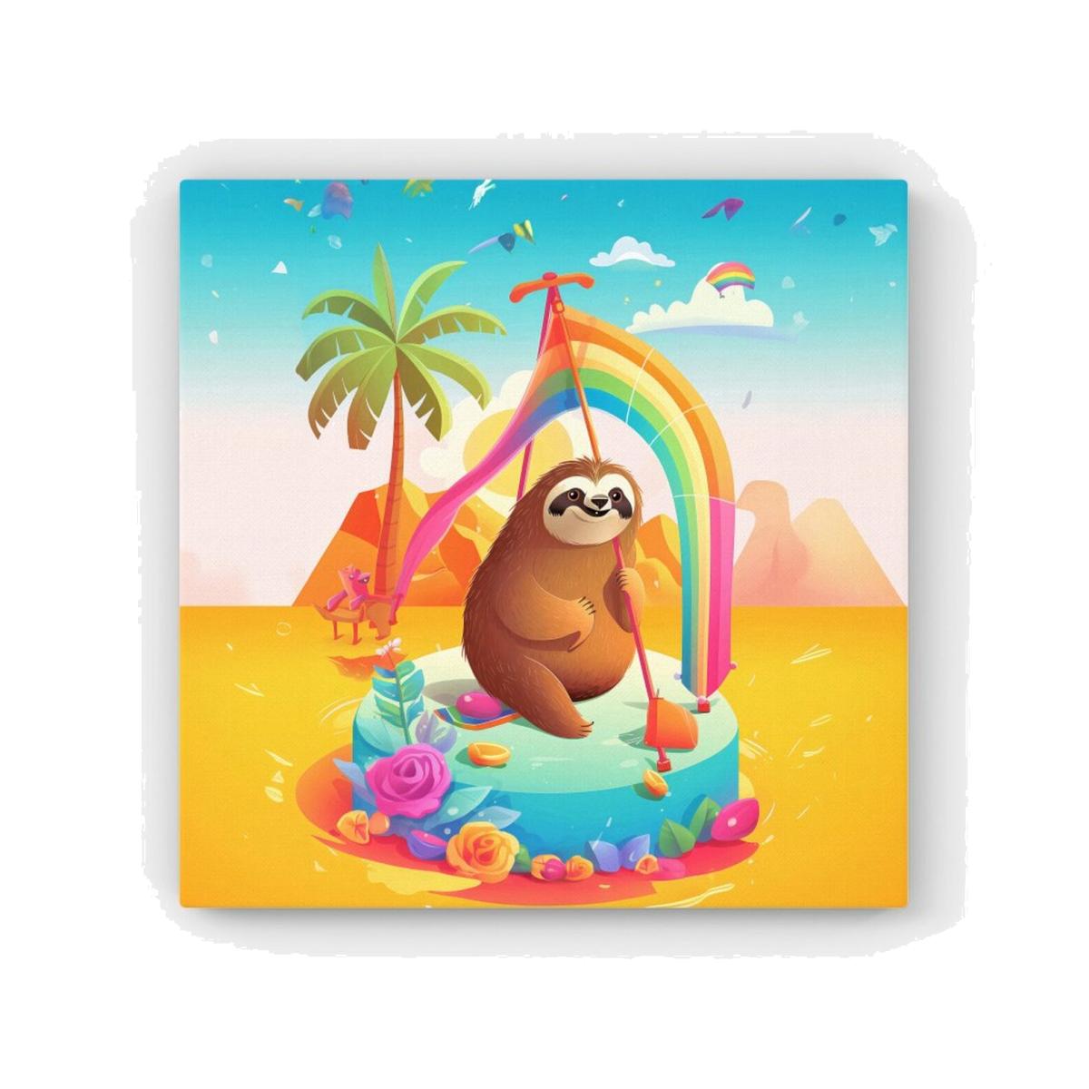 I love this sloth on a beach holiday print for its playful yet relaxed vibe, making it a great piece to add a touch of whimsy to a casual living space or children's room. The bright yellow hue and fun, cartoon style work well in light-filled interiors or schemes with coastal or tropical accents. Practical styling tips include pairing it with neutral frames or placing it against a simple wall to avoid visual clutter. It also works well mixed with other colourful artwork or accessories that emphasise a lively, fun atmosphere-think vibrant cushions or colourful planters. Overall, it’s perfect for bringing a cheerful, laid-back feel to any space that could use a bit of sunshine.