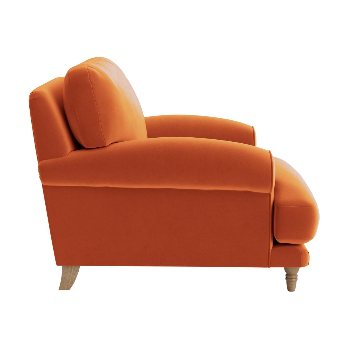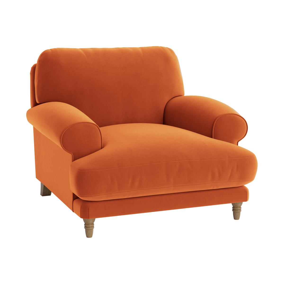 I really like the slowcoach armchair for its cosy, vintage-inspired design that adds warmth and character to any space. Its inviting shape and plush upholstery make it perfect for relaxed living rooms or reading nooks, especially in mid-century or eclectic interiors. When styling, consider pairing it with neutral or earthy tones to highlight its rich orange hue, and soften the look with a textured throw or patterned cushions. It's also versatile enough to work well with both modern and traditional interiors, making it an adaptable statement piece. Just a tip-placing it near a side table or next to a plant can create a welcoming, lived-in feel.