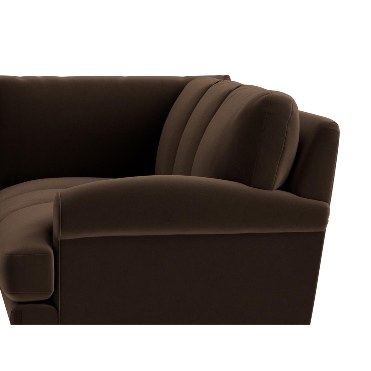 I really like this semi-circular corner sofa for its cosy yet versatile shape, making it a great anchor piece for both open-plan living and more intimate spaces. Its plush, dark fabric lends itself well to contemporary interiors but can also blend seamlessly with classic styles. You might consider styling it with a mix of textured cushions and throws in neutral or muted tones to create a layered, inviting look. Practical tips include positioning it to optimise natural light and pairing it with a low coffee table to keep the space functional. Its inviting design encourages relaxed socialising, making it a stylish yet practical addition to any living area.
