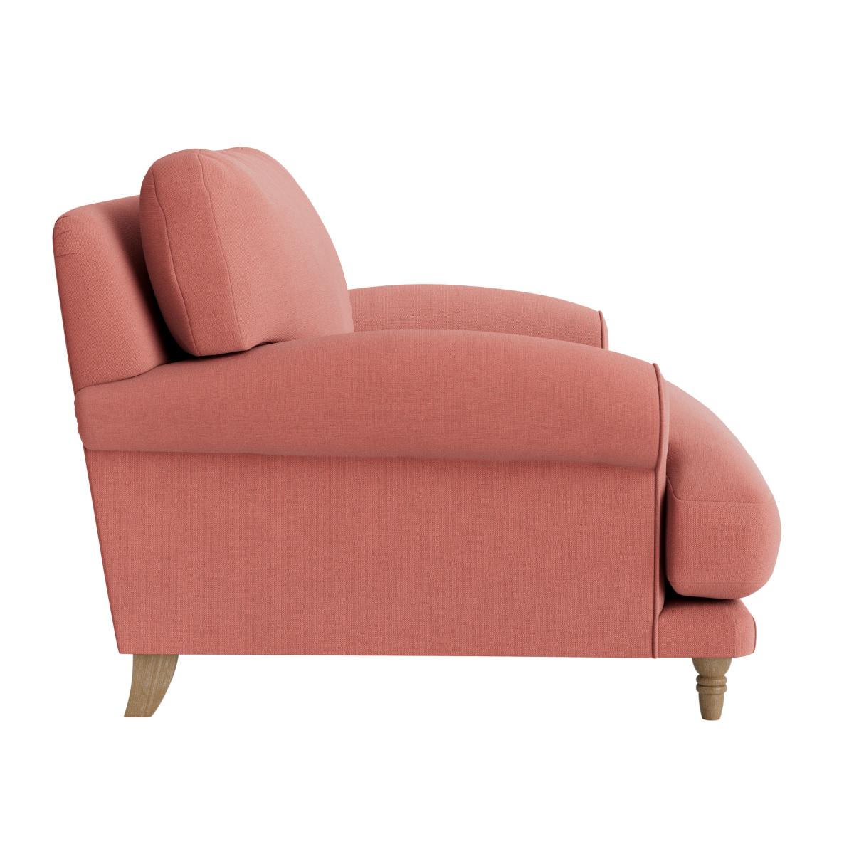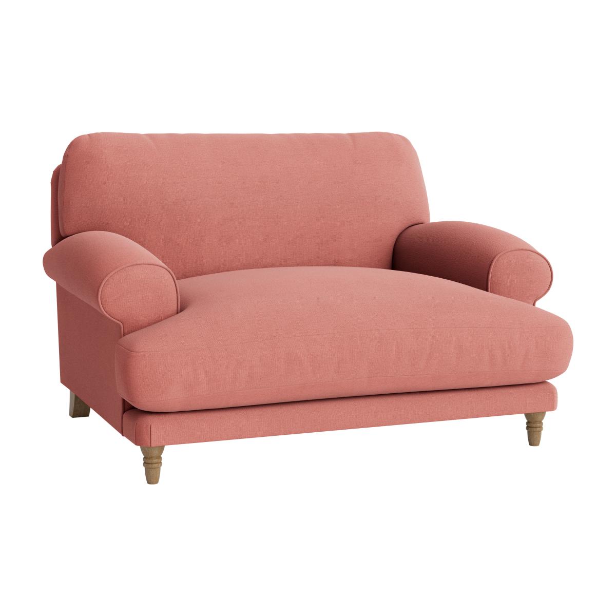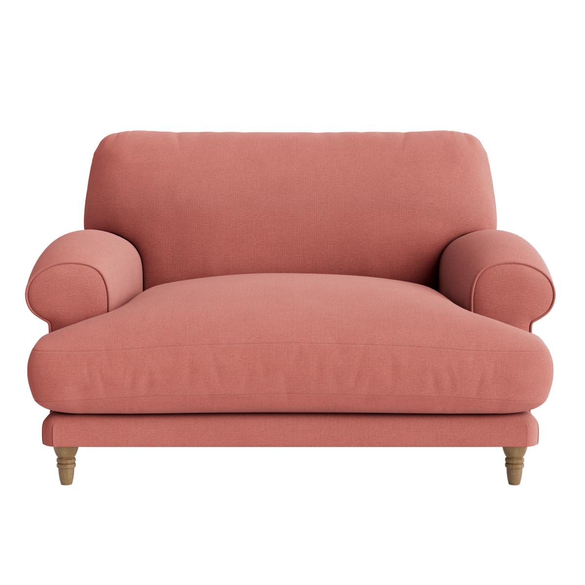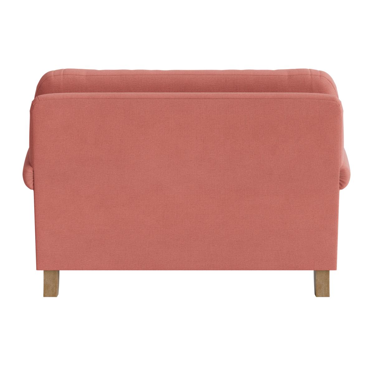 I love the love seat because of its approachable, compact design that adds a cosy yet stylish touch to various interiors. It works particularly well in small living rooms, reading nooks, or as an accent piece in larger spaces. Its soft pink hue offers versatility, pairing beautifully with neutral tones for a calming vibe or with bolder colours for contrast. Practical styling tips include complementing it with textured throws and cushions for added comfort and visual interest, or placing it alongside mid-century furniture to enhance its classic charm. This piece is ideal for creating a welcoming, relaxed environment without overwhelming the space.