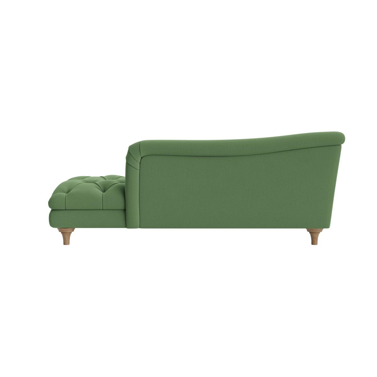 I love this chaise because of its versatile design and fresh green hue, which can brighten up both modern and more eclectic interiors. It works particularly well in relaxed living areas or spacious bedrooms, where its long lounge can serve as both a statement piece and an inviting spot for lounging. For styling, consider pairing it with neutral-toned cushions or throws to balance the colour or mixing in natural textures like wood or rattan for a cosy, layered look. Its practical yet stylish form means it suits both contemporary spaces and vintage-inspired schemes, making it an easy addition to a variety of interiors.