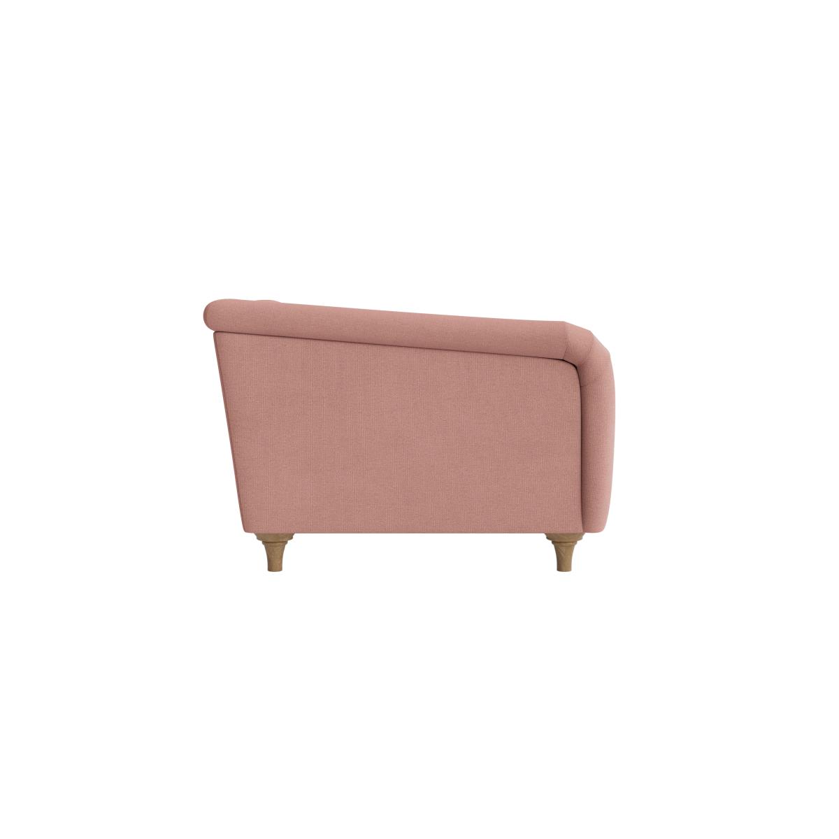 I love this chaise longie for its soft, inviting silhouette and versatile appeal. It works particularly well in eclectic or contemporary interiors, where its understated elegance can add a sophisticated touch without overwhelming the space. The blush pink fabric is a great base colour that can be styled with neutral tones for a subtle look or vibrant accessories for a pop of colour. Practical tips include pairing it with a textured throw or a couple of patterned cushions to create visual interest. Its compact yet comfy design makes it ideal for smaller rooms or as an accent piece in a larger living area, providing a chic lounging spot that’s easy to style around.