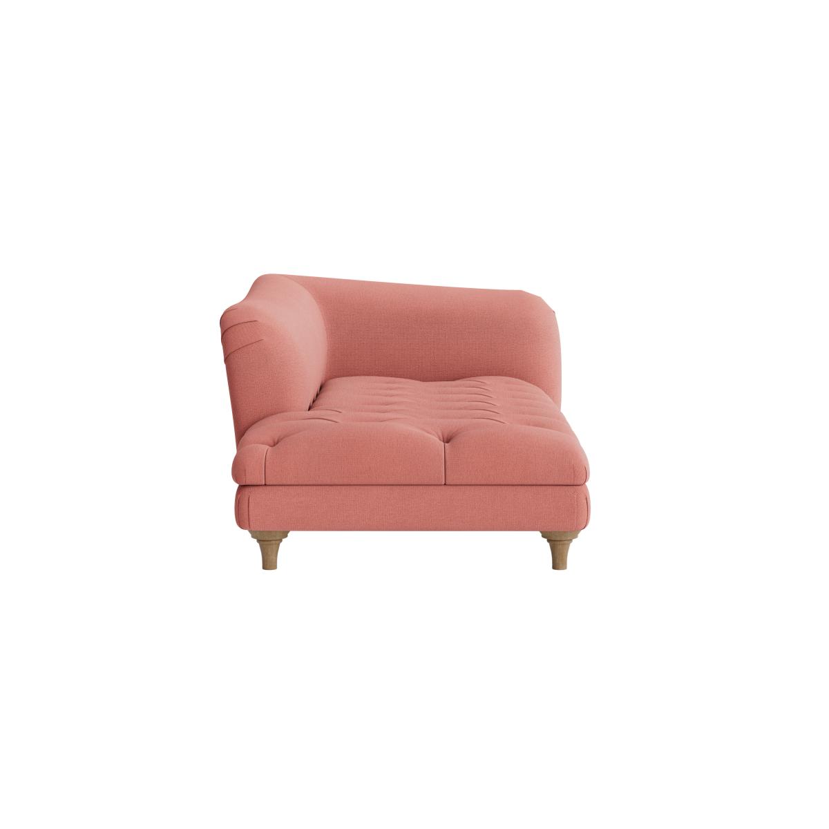 I love this chaise because it offers a perfect blend of comfort and style, making it a versatile addition to both contemporary and more eclectic interiors. Its soft pink hue adds a touch of understated elegance and can brighten up neutral colour schemes or complement richer palettes. The tufted seat on the Jack makes it look inviting, while the slightly curved back adds a modern twist. For styling, consider pairing it with textured cushions and a cosy throw for a lived-in look, or place it strategically in a reading nook or as an accent piece in a living room. Practical tips include positioning it near a window or paired with a side table to maximise its lounging potential. It works beautifully in schemes that favour soft, muted tones or even bold, modern colours for a statement contrast.
