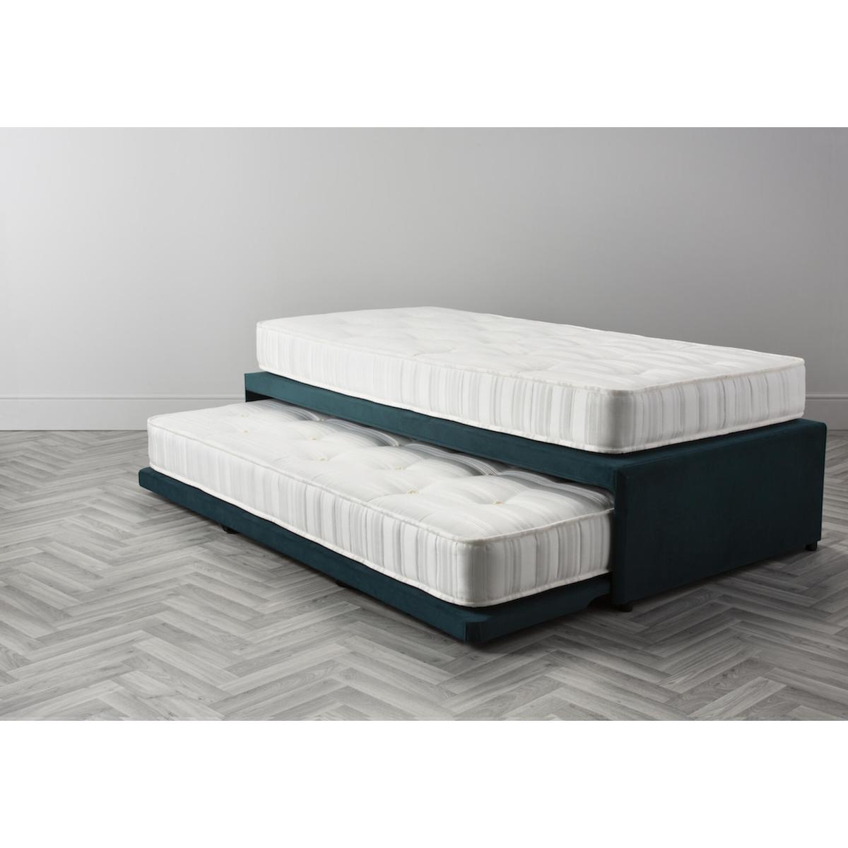 Having Company at the last minute? Tight on space in general? The Slumber Pull Out Guest Bed is here to save the day. Created with matching fabric sides that velcro down so the under bed is perfectly hidden when not in use and easy mechanisms to pull out and set up at a moments notice. Lift the pull out bed to create one large super king bed, or leave down for younger children not to fall off. With Mattresses included, choose this bed in any one of our fabulous fabrics, and presto your room is ready.
