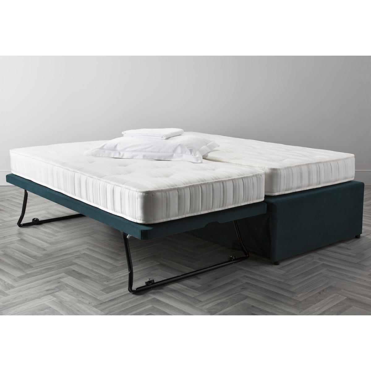 Having Company at the last minute? Tight on space in general? The Slumber Pull Out Guest Bed is here to save the day. Created with matching fabric sides that velcro down so the under bed is perfectly hidden when not in use and easy mechanisms to pull out and set up at a moments notice. Lift the pull out bed to create one large super king bed, or leave down for younger children not to fall off. With Mattresses included, choose this bed in any one of our fabulous fabrics, and presto your room is ready.