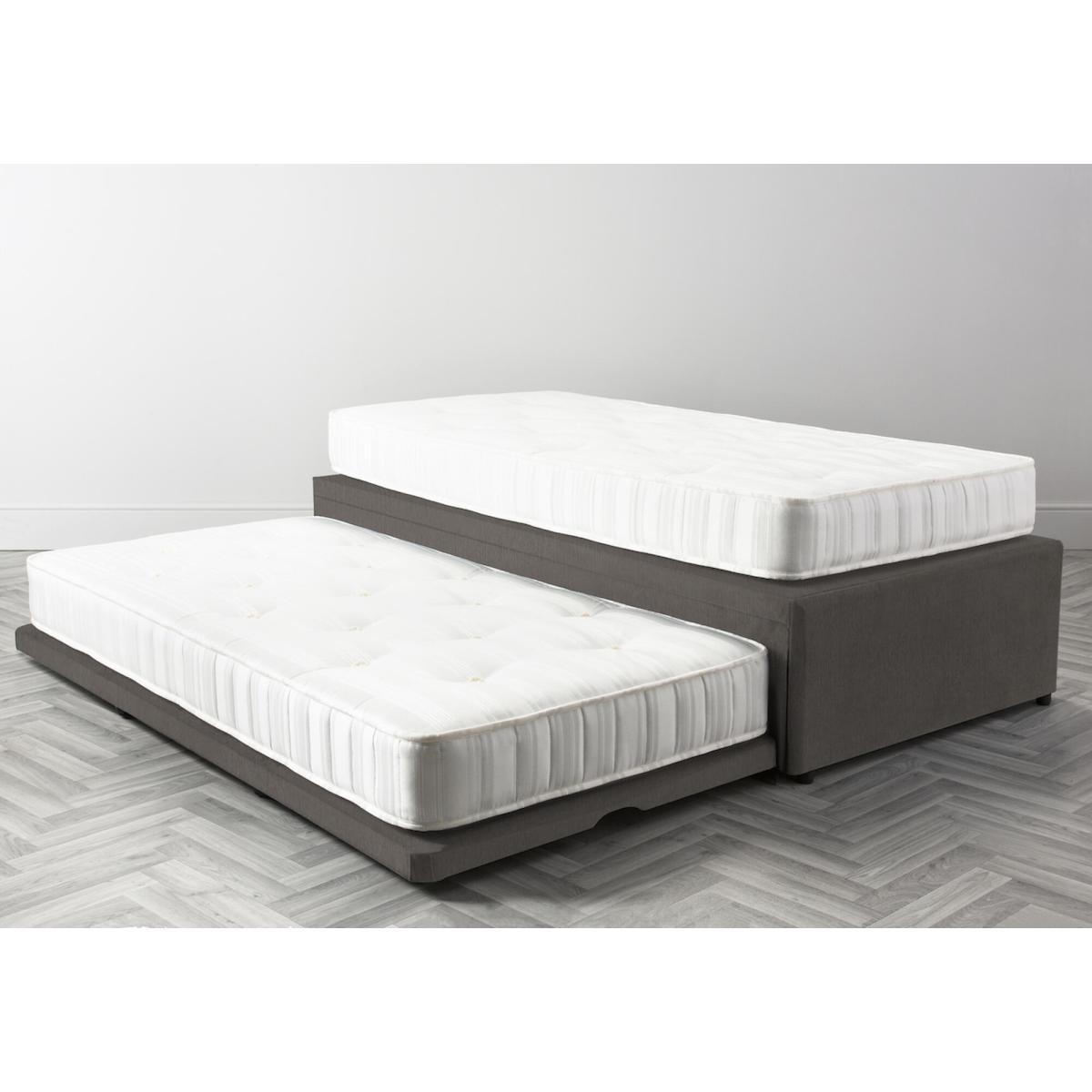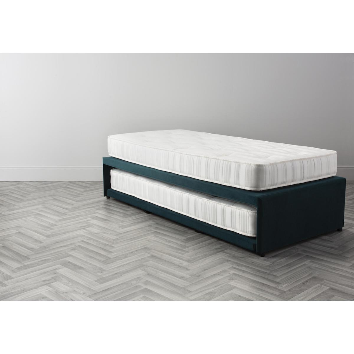 Having Company at the last minute? Tight on space in general? The Slumber Pull Out Guest Bed is here to save the day. Created with matching fabric sides that velcro down so the under bed is perfectly hidden when not in use and easy mechanisms to pull out and set up at a moments notice. Lift the pull out bed to create one large super king bed, or leave down for younger children not to fall off. With Mattresses included, choose this bed in any one of our fabulous fabrics, and presto your room is ready.