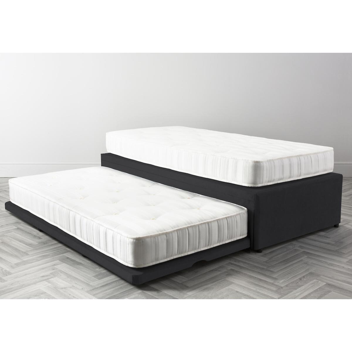 Having Company at the last minute? Tight on space in general? The Slumber Pull Out Guest Bed is here to save the day. Created with matching fabric sides that velcro down so the under bed is perfectly hidden when not in use and easy mechanisms to pull out and set up at a moments notice. Lift the pull out bed to create one large super king bed, or leave down for younger children not to fall off. With Mattresses included, choose this bed in any one of our fabulous fabrics, and presto your room is ready.