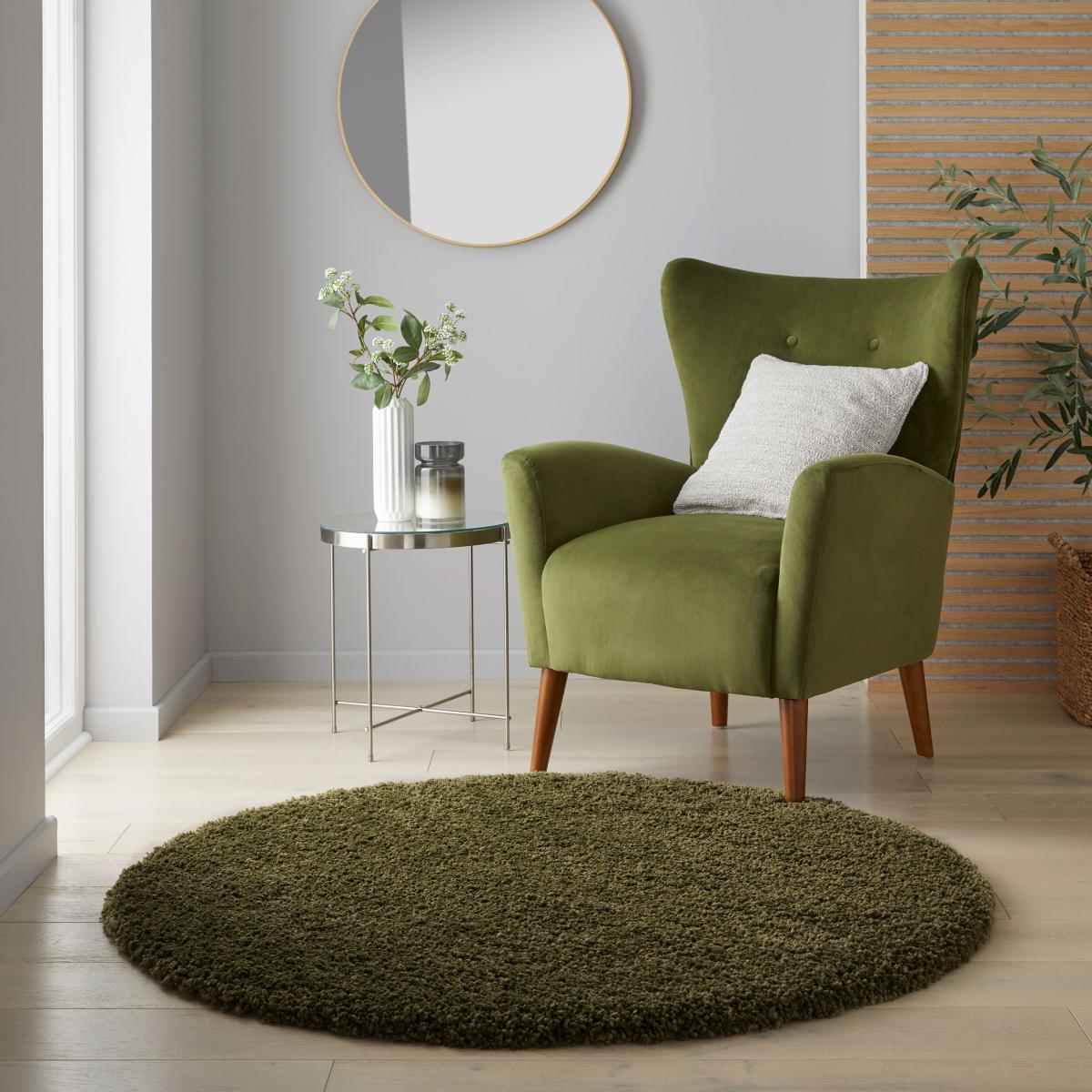 Slumber Shaggy Round Rug Olive (Green)