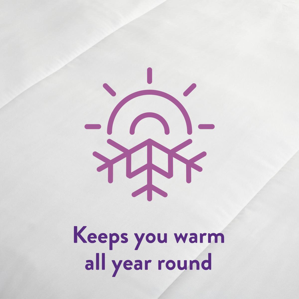 No matter the season, this sustainable Slumberdown 10.5 Tog Climate Control Duvet is specially designed to help you maintain a comfortable temperature at night thanks to the 100% recycled polyester filling. Its unique fibres draw moisture into the outer layer where it is quickly evaporated to maintain the perfect temperature whilst you sleep. Its built in temperature control prevents you from overheating whilst keeping you warm and comfortable, providing a relaxing and rejuvenating rest.