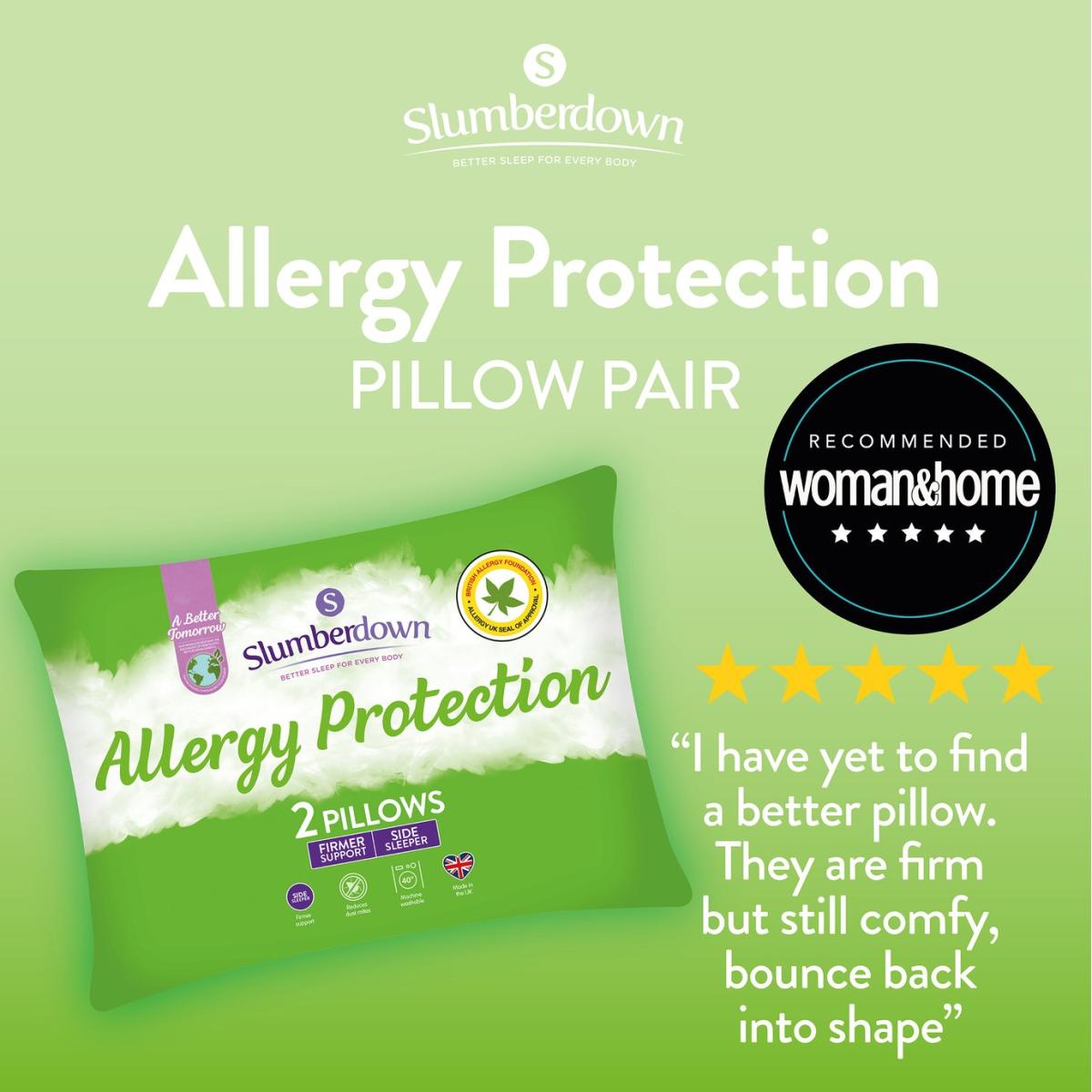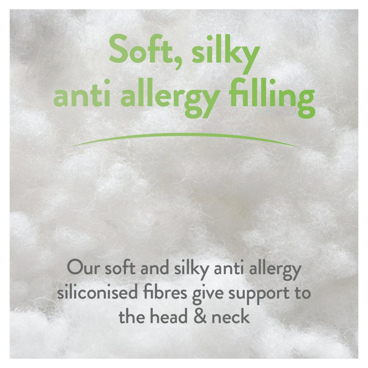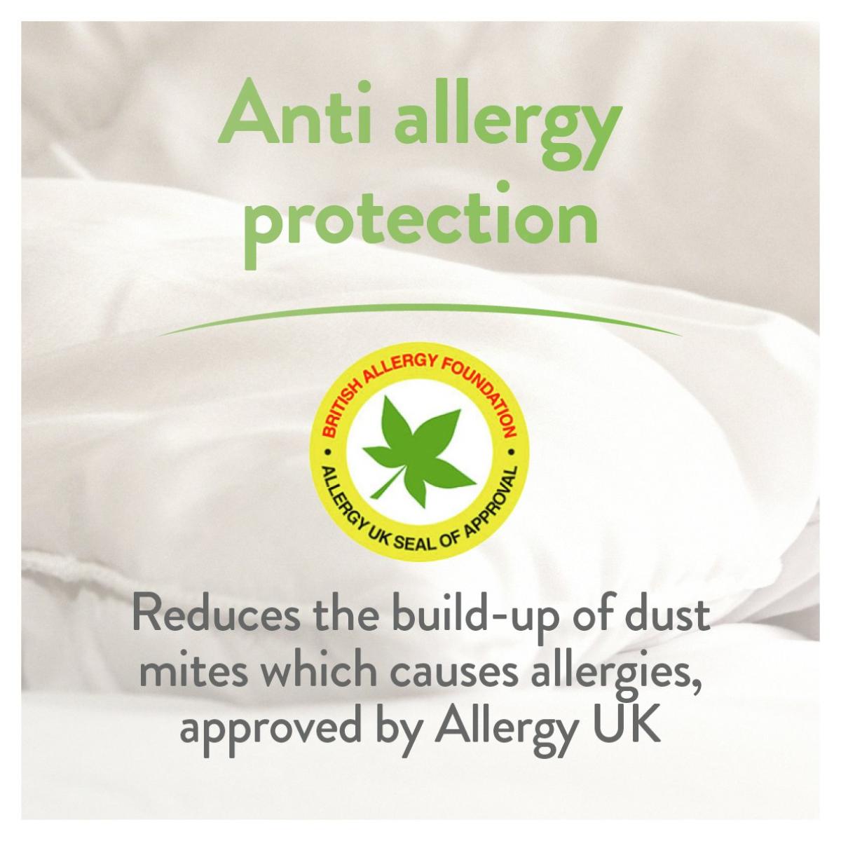 At Slumberdown, we believe everybody deserves a better night's sleep. The Slumberdown Allergy Protection Pillow has been designed with a lovely cotton cover and is filled with a silky soft Anti Allergy fibre that offers great support for your head and neck. This product has Allergy UK's seal of approval, which is only awarded to products that have been tested and approved to very high standards by leading allergy specialists. The pillow offers Firm support which is ideal if you sleep on your side.