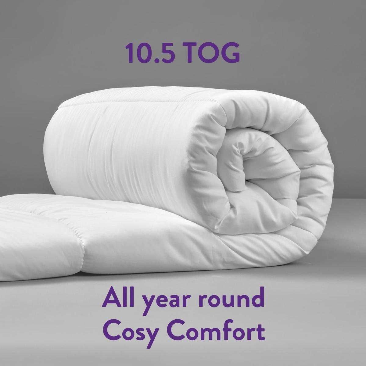 At Slumberdown, we believe every body deserves a better night sleep. The Slumberdown Cotton Comfort 10.5 Tog Duvet duvet is ideal for all round use. The cool soft touch cotton cover and lightweight fibre making it perfect for anytime of the year. What's more, the product is Easy Care which means its machine washable and can be tumble dried.
