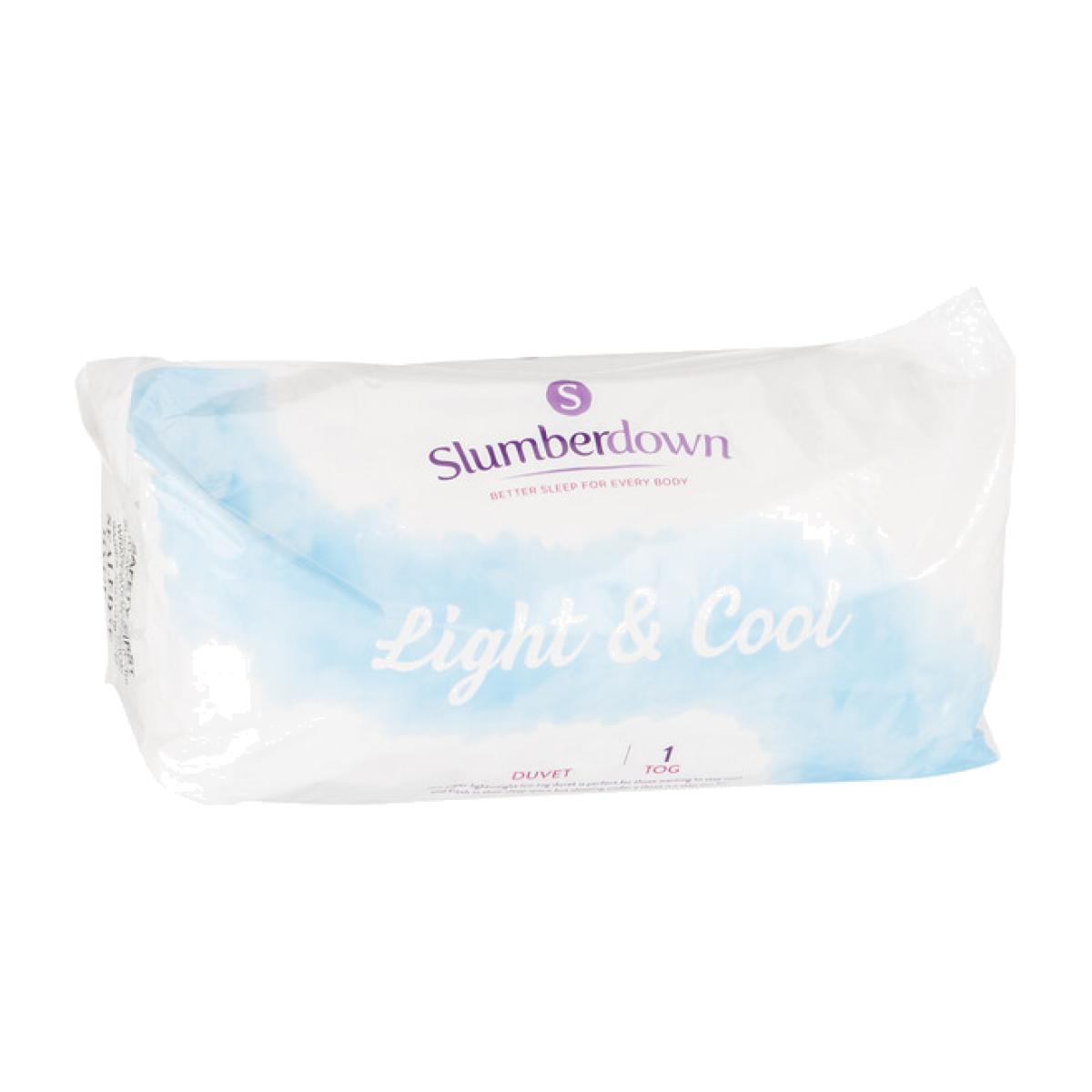 Keep yourself feeling cool and comfortable as you sleep with this Light and Cool Duvet from Slumberdown. This super lightweight duvet is made to a very low tog rating of 1 so you can stay cool and fresh - perfect for those who want something lighter than their current duvet, but who thinks sleeping under a sheet is just a step too far! The soft-touch cover makes it a dream to sleep with night after night and it's even machine washable for your convenience.