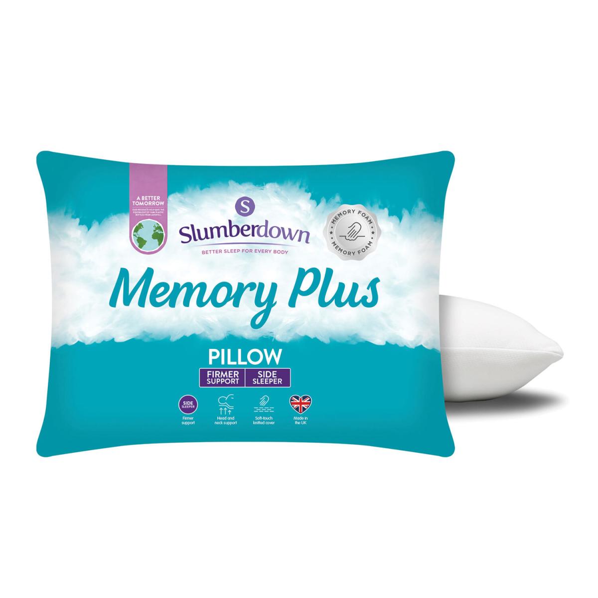 This Slumberdown Memory Plus Pillow has a soft knit cover and a unique memory foam wrap that surrounds a soft 100% recycled polyester hollowfibre filling to gently mould and support your head and neck. The super support level is ideal for side sleepers and helps to relive pressure and reduce head and neck pain. Providing maximum support and comfort as you rest, so you can enjoy a relaxing nights sleep, all night long with these sustainable pillows.
