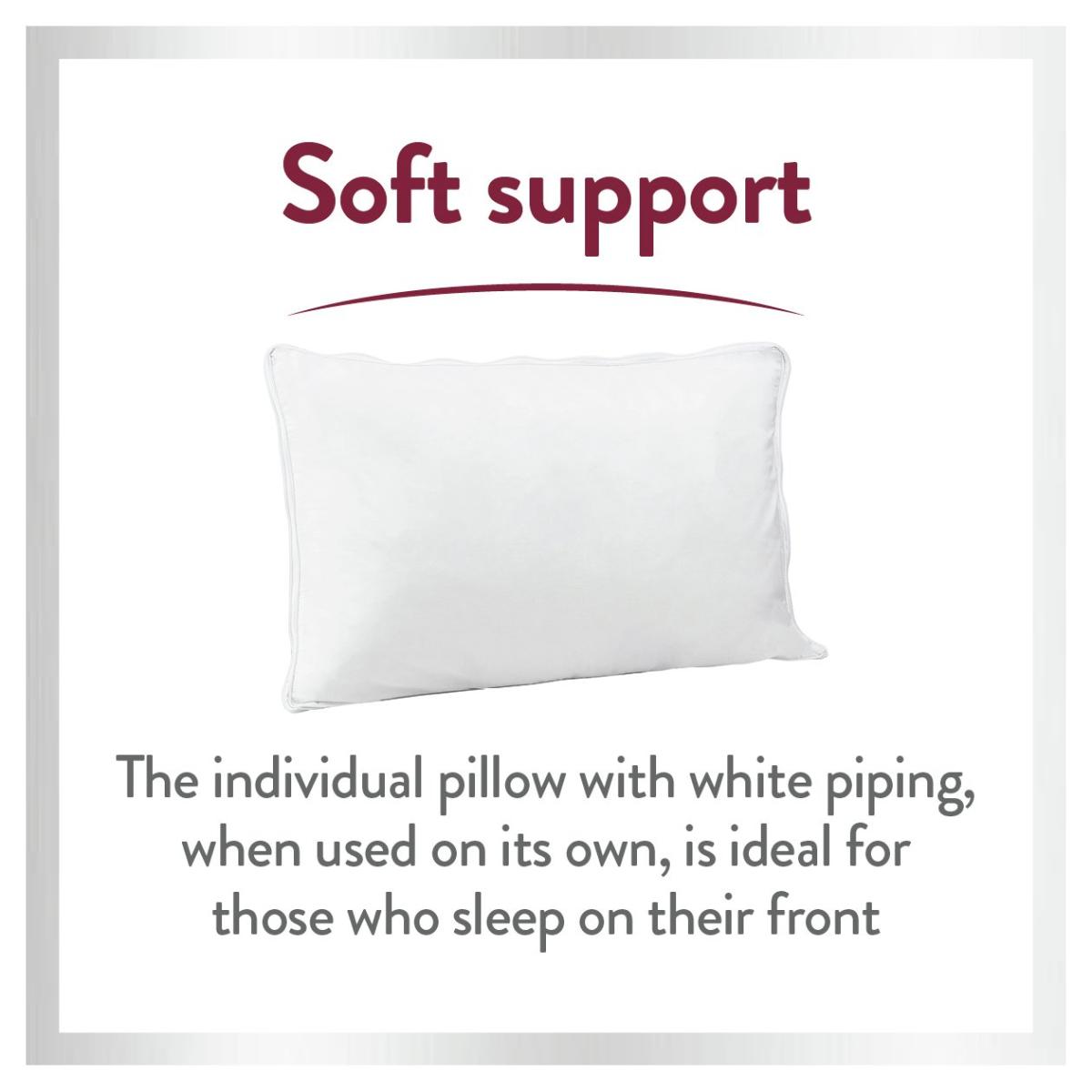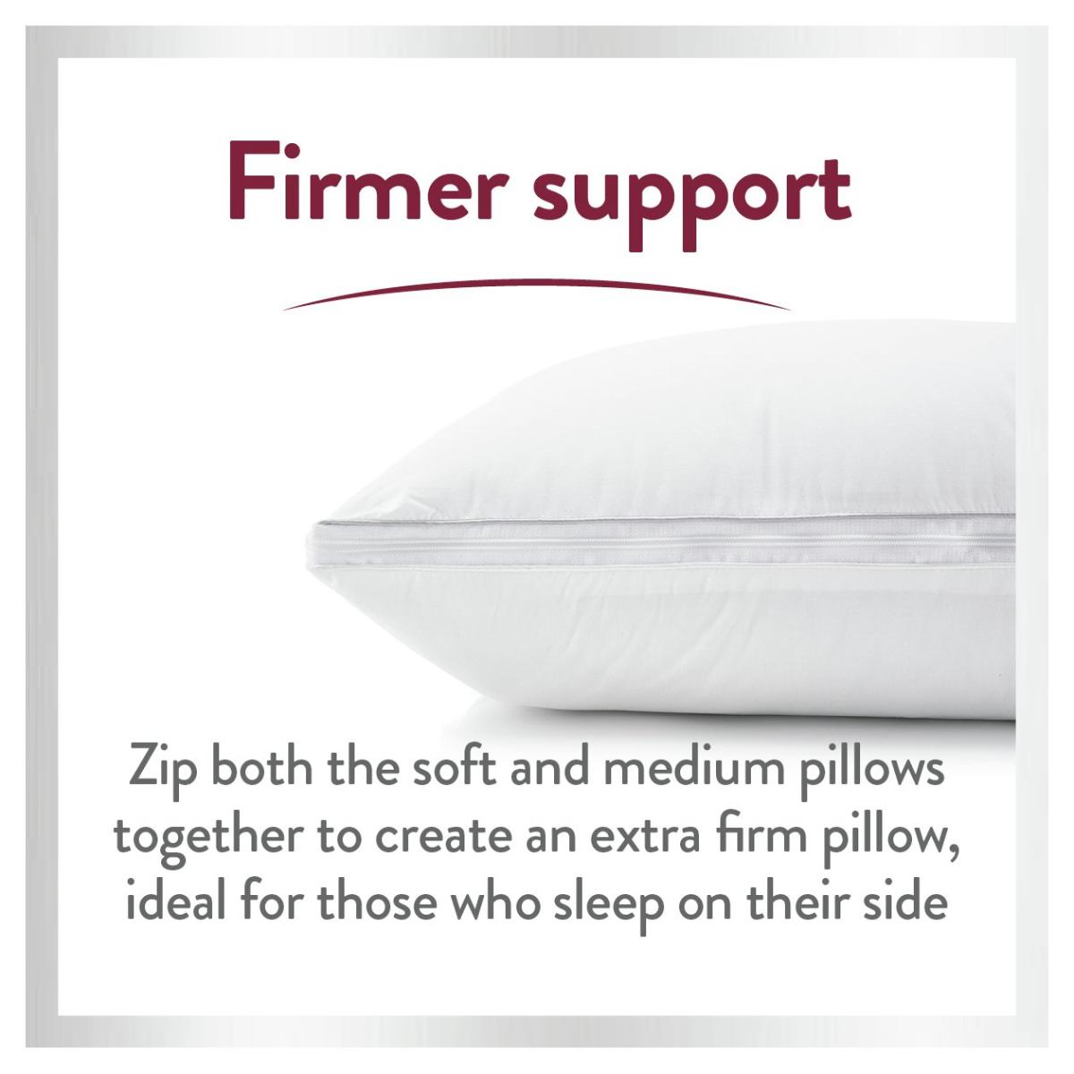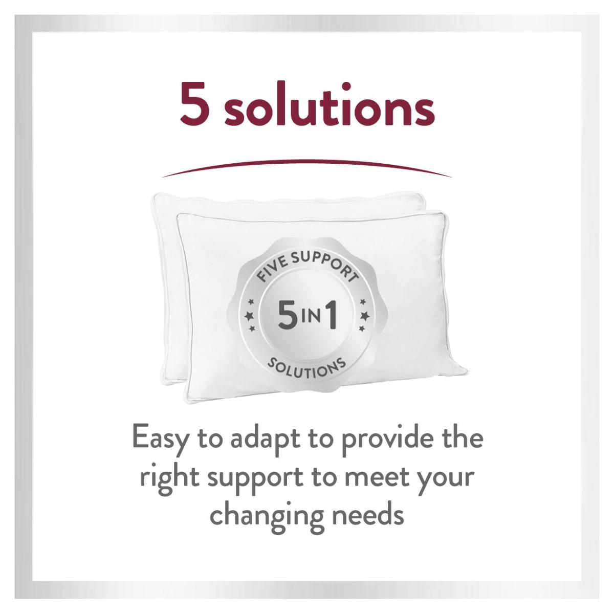 The Slumberdown 5-in-1 Multi Support Pillow has a soft 233T. C cotton cover, by adjusting the zip it can be tailored into FIVE different pillows. The soft support pillow is perfect for front sleepers, the medium support pillow is ideal for back sleepers, and when together the firmer support pillow is more suitable for side sleepers. The body pillow provides support to your back and knees and the v-shaped pillow adds extra support to your neck and back when resting or sleeping. This pillow meets your individual requirements day and night.
