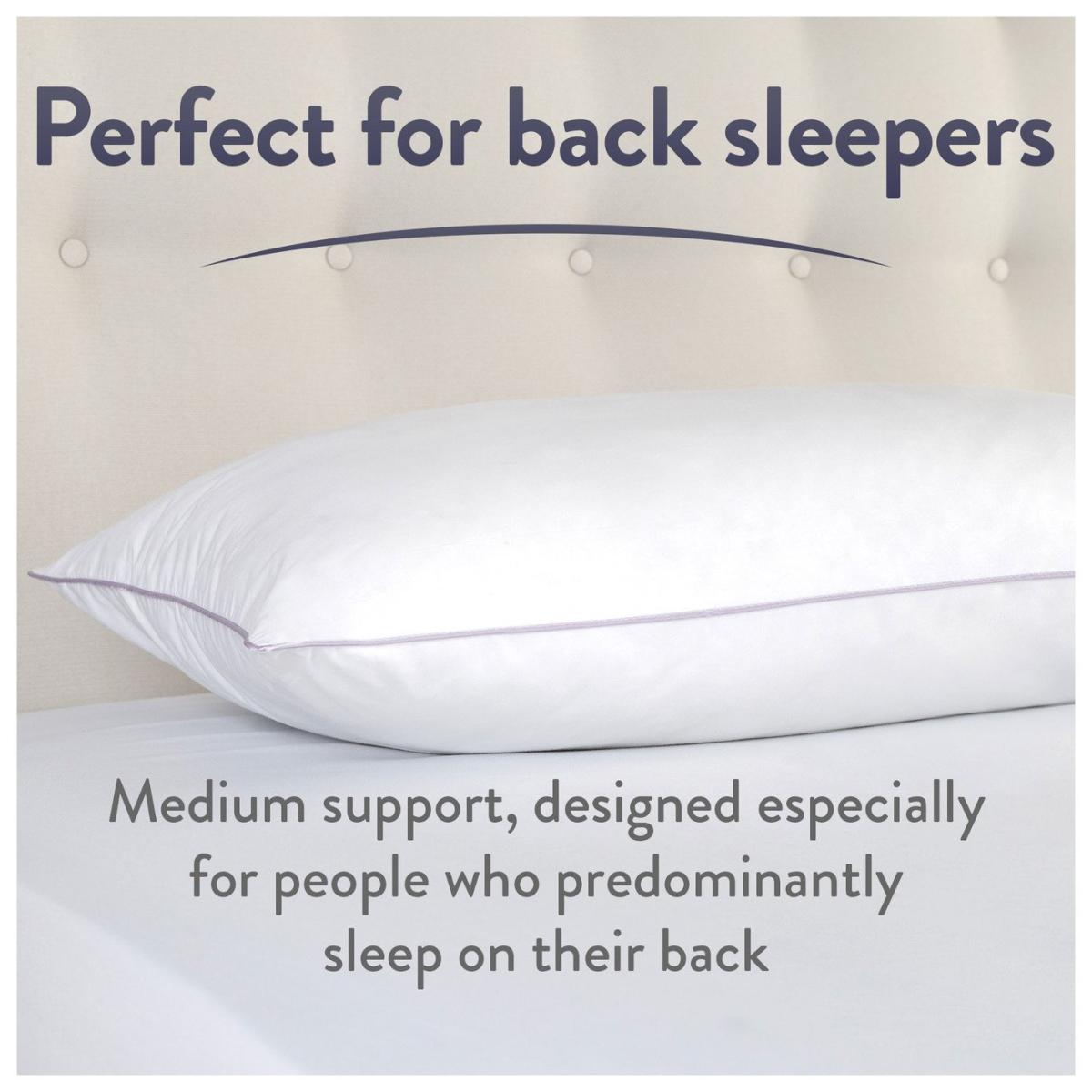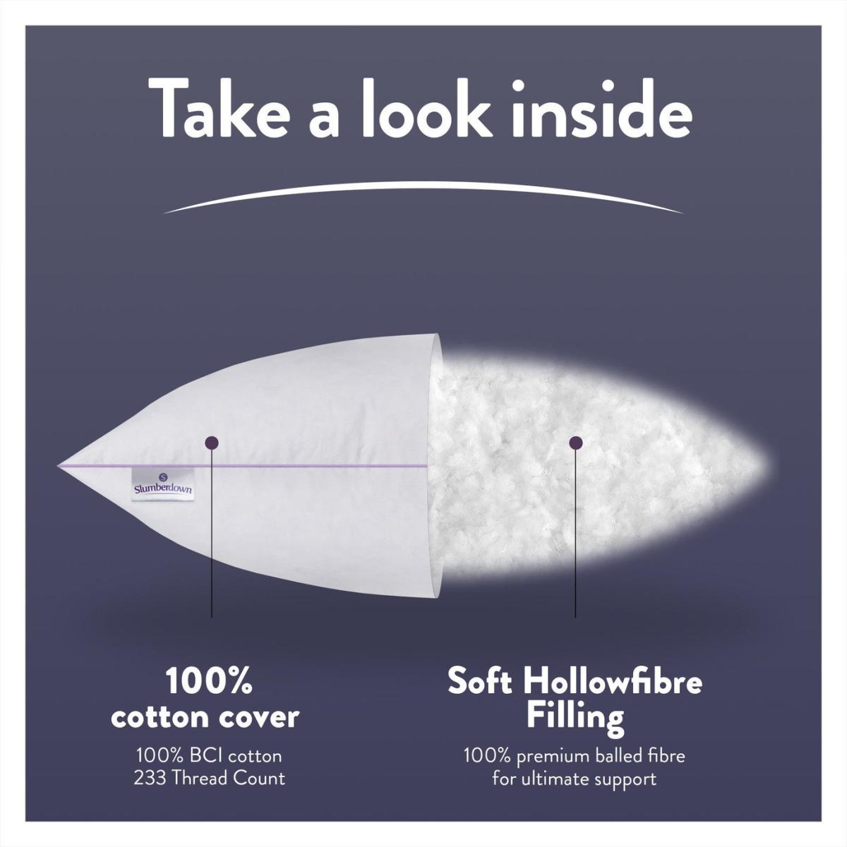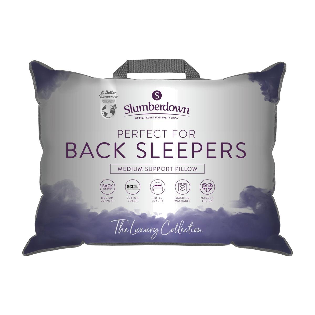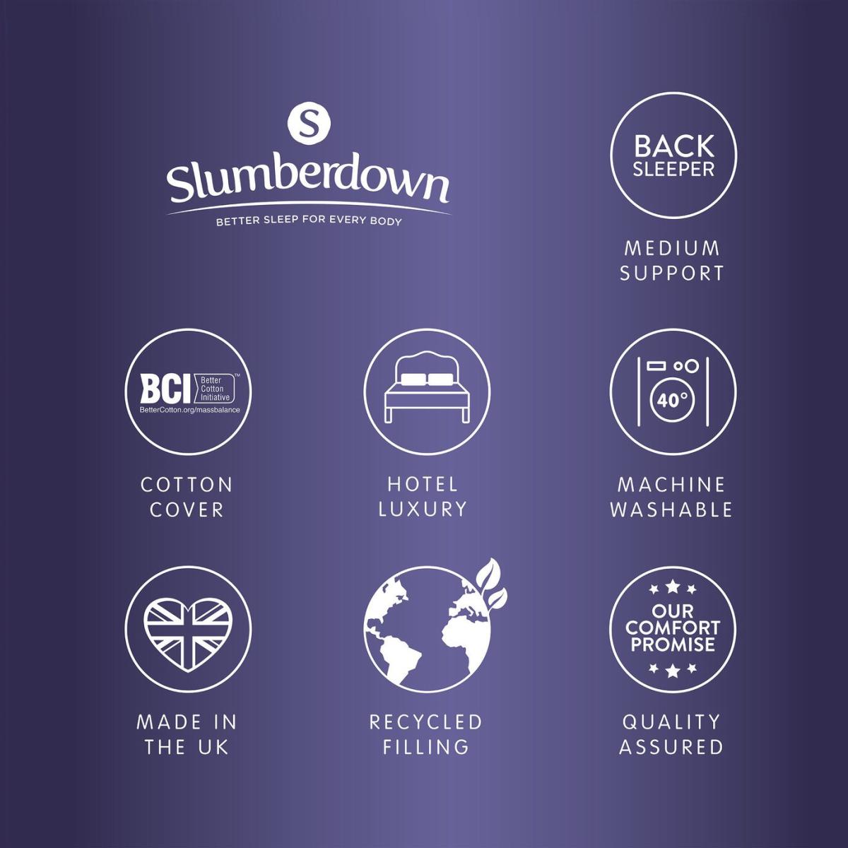 At Slumberdown, we believe everybody deserves a better night's sleep. The Slumberdown Perfect for Back Sleepers Pillow has been designed to ensure you get the right level of support for the way you sleep. This pillow offers medium support and has a medium fill, perfect for those that sleep on their back. The 100% cotton 233 thread count cover has a delicate piped edge and is filled with lovely soft fibres to ensure your head/neck is fully supported. Pack quantity: 1. Cover made from 100% cotton percale. Filling made from 100% polyester. Medium pillow. Suitable for back sleepers. Size L74, W48cm. Machine washable. Anti-allergy.