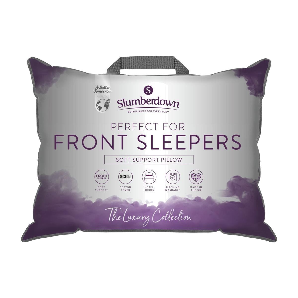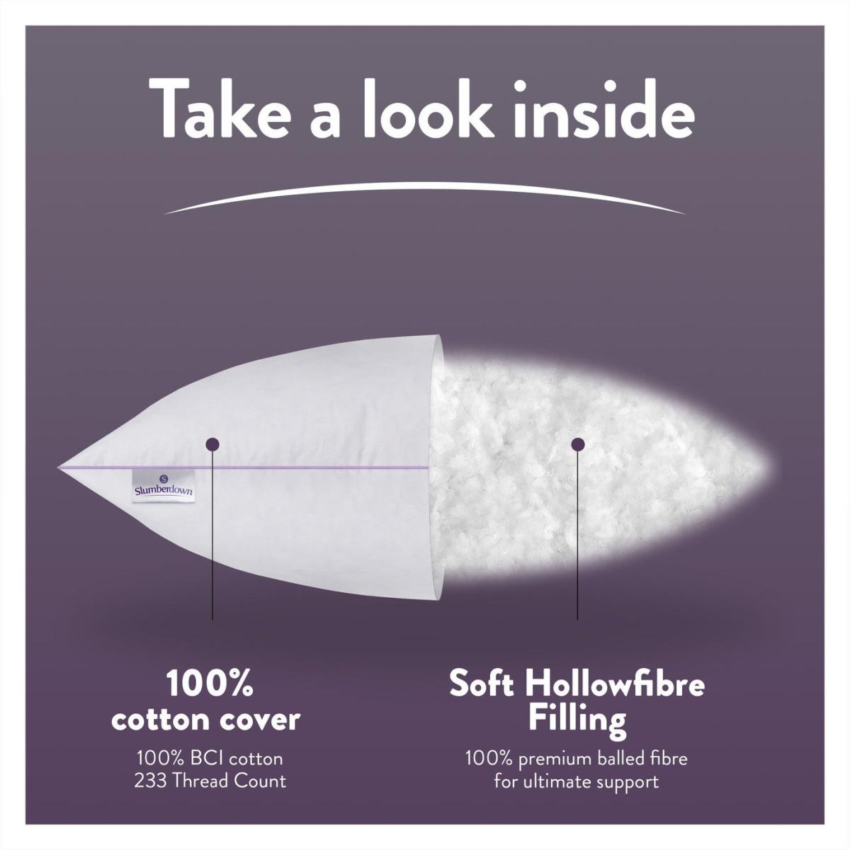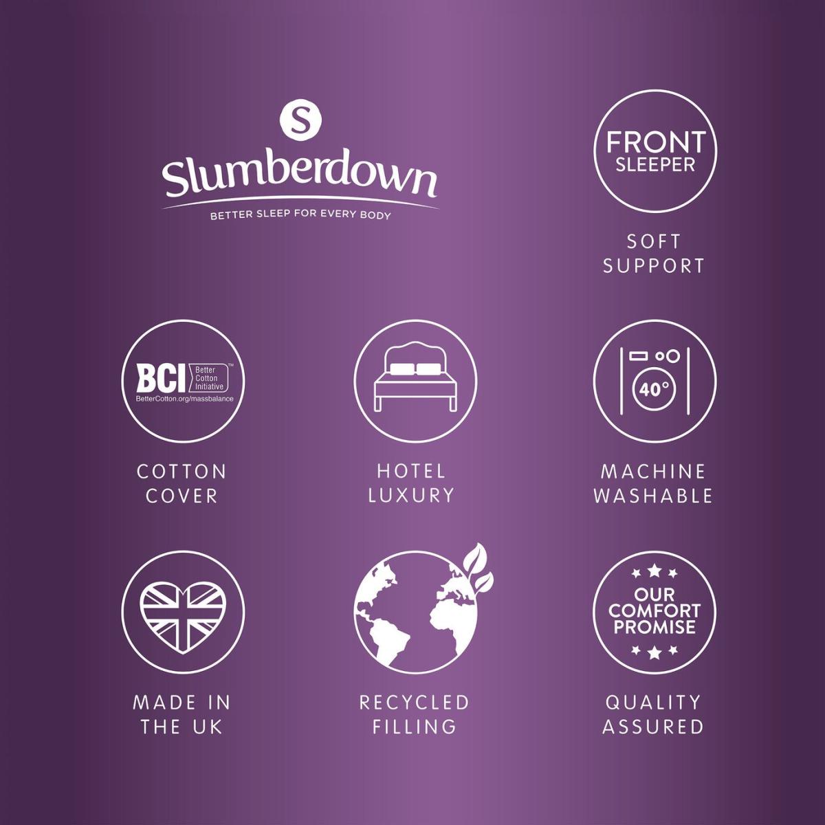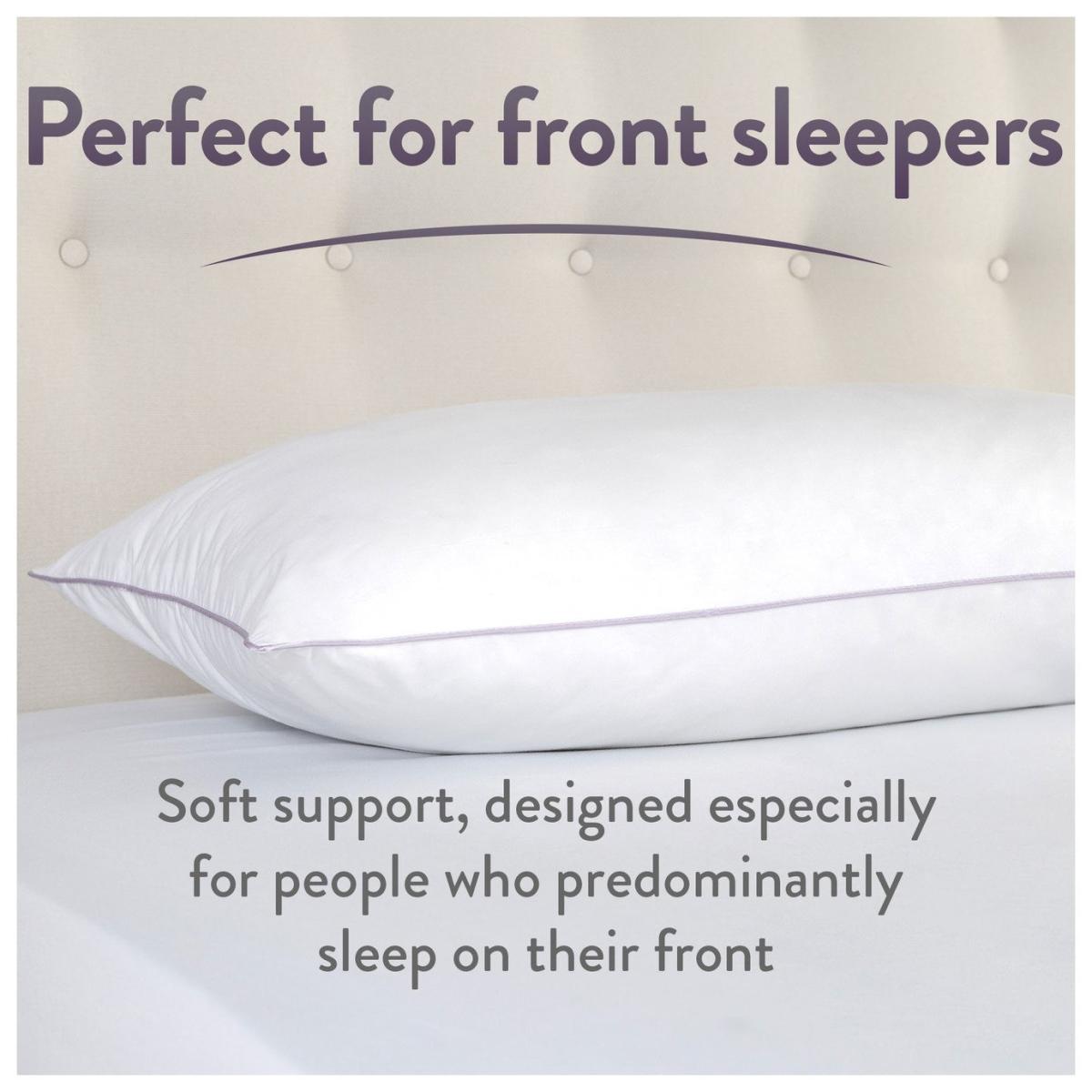 At Slumberdown, we believe everybody deserves a better night's sleep. The Slumberdown Perfect for Front Sleeper Pillow has been designed to ensure you get the right level of support for the way you sleep. This pillow offers soft support and has a reduced fill perfect for those that sleep on their front. The 100% cotton 233 thread count cover has a delicate piped edge and is filled with lovely soft fibres to ensure your head/neck is fully supported. What's more, the product is Easy Care which means its machine washable and can be tumble dried. Pack quantity: 1. Cover made from 100% cotton percale. Filling made from 100% polyester. Soft pillow. Suitable for front sleepers. Size L74, W48cm. Machine washable. Non-allergenic. Manufacturer's 1 year guarantee.