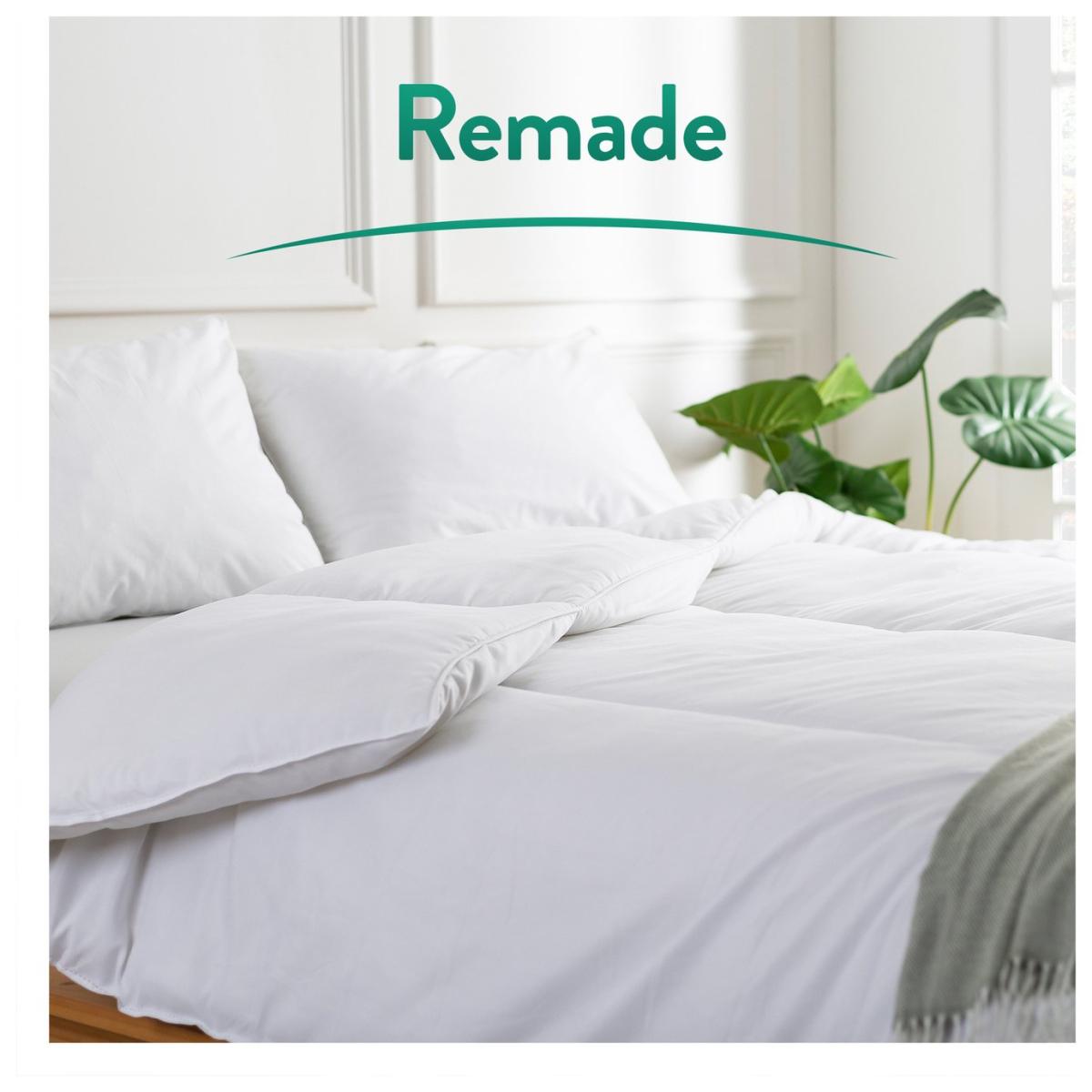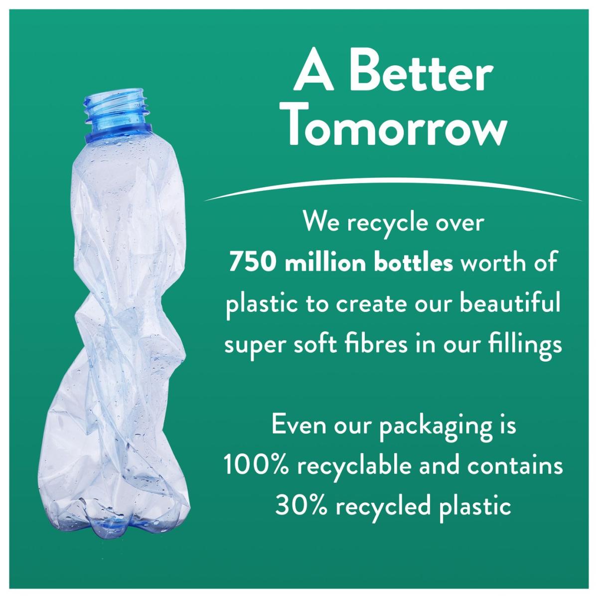 At Slumberdown, we believe everybody deserves a better night sleep. The Slumberdown Re-Made 10.5 Tog Duvet is made from 100% recycled materials. The duvet has been designed for all year-round use. The soft touch cover and recycled fibre provide the optimum level of warmth, ensuring have a great night's sleep. What's more the product is Easy Care which means it's machine washable and can be tumble dried. Single duvet. 10.5 tog duvet. Cover made from 100% recycled polyester. Filling made from 100% recycled polyester. Size L200, W135cm. Machine washable. Suitable for washing in a standard size washing machine. Suitable for tumble drying. Non-allergenic.