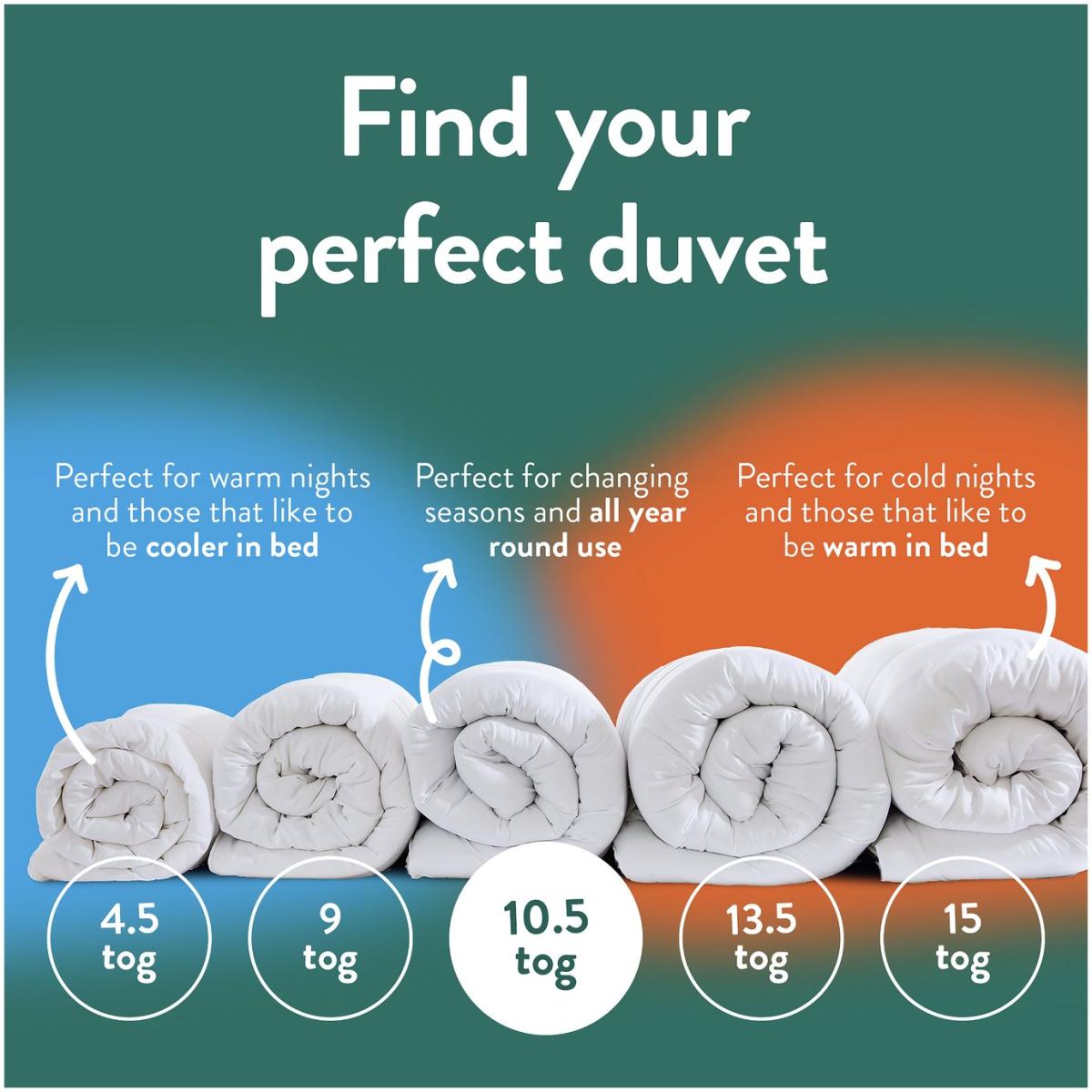 At Slumberdown, we believe every body deserves a better night sleep. The Slumberdown Rest & Relax range has been created especially for all of the family. This 10.5 Tog Duvet is perfect for all year round use. The soft touch cover is wonderfully huggable ensuring you stay perfectly warm on those cold winter nights. What's more, the product is Easy Care which means its machine washable and can be tumble dried. Double duvet. 10.5 tog duvet. Cover made from 100% polyester. Filling made from 100% recycled polyester. Size L200, W200cm. Machine washable. Suitable for washing in a standard size washing machine. Suitable for tumble drying. Non-allergenic. Manufacturer's 1 year guarantee.