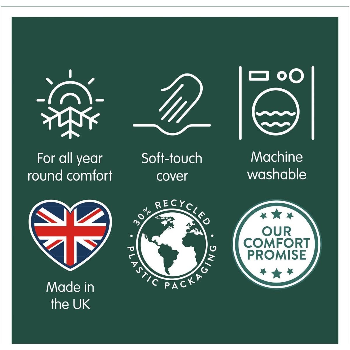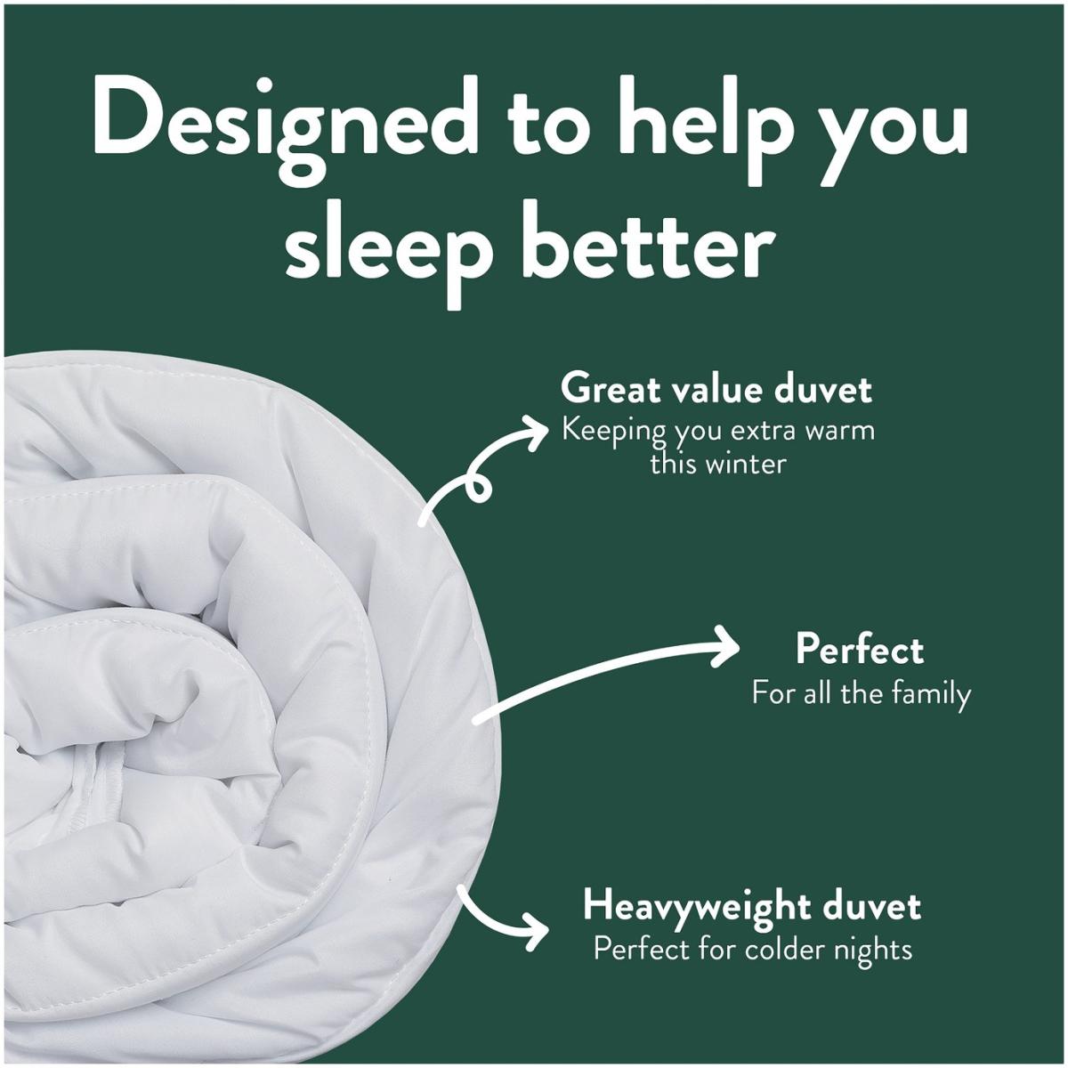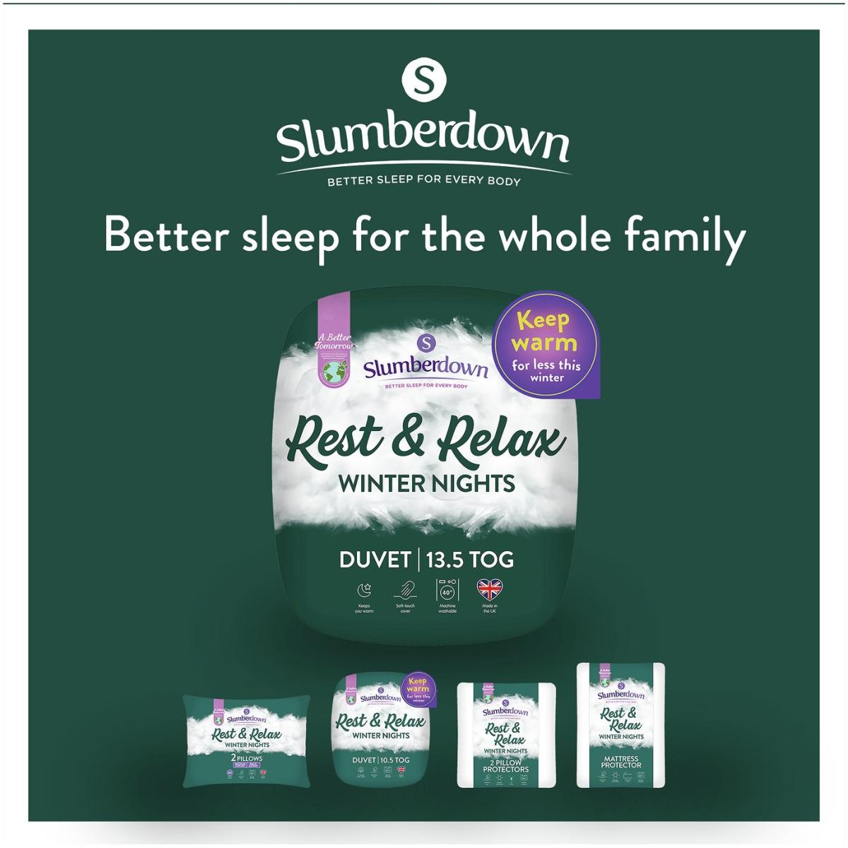 At Slumberdown, we believe every body deserves a better night sleep. The Slumberdown Rest & Relax range has been created especially for all of the family. This 13.5 Tog Duvet is perfect for cold nights or those that like to be warmer in bed. The soft touch cover is wonderfully huggable ensuring you stay toasty warm on those cold winter nights. What's more, the product is Easy Care which means its machine washable and can be tumble dried. Double duvet. 13.5 tog duvet. Cover made from 100% polyester. Filling made from 100% recycled polyester. Size L200, W200cm. Machine washable. Suitable for washing in a standard size washing machine. Suitable for tumble drying. Non-allergenic. Manufacturer's 1 year guarantee.