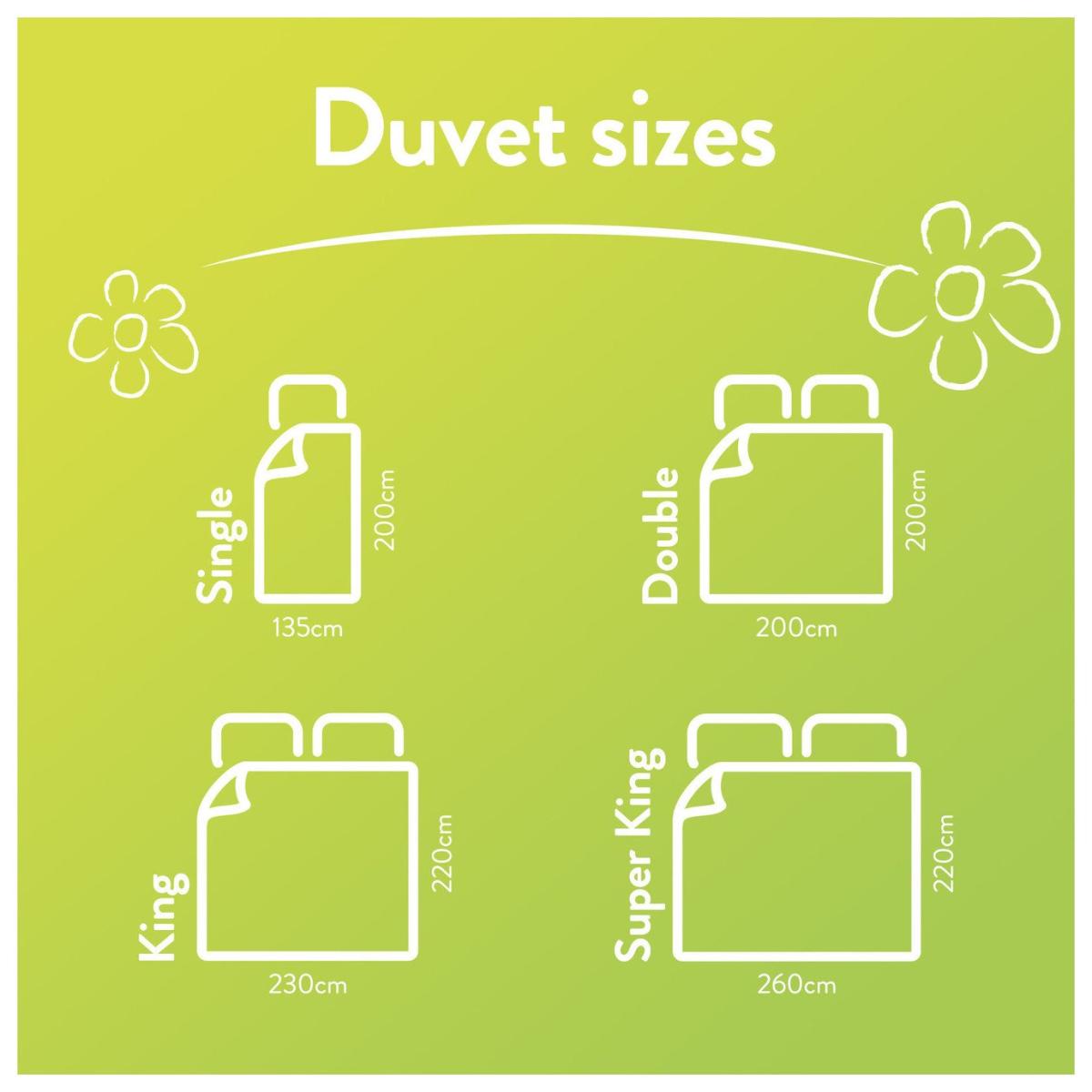At Slumberdown, we believe everybody deserves a better night sleep. The Slumberdown Spring 7.5 Tog Duvet duvet is lightweight making it ideal for transitioning between the colder and warmer nights. The product has our unique smart stitch premium finish which gives a square corner making it easier to make your bed. What's more, the product is Easy Care which means its machine washable and can be tumble dried. King size duvet. 7.5 tog duvet. Cover made from 100% polyester. Filling made from 100% polyester. Size L220, W225cm. Machine washable. Suitable for washing in a standard size washing machine. Suitable for tumble drying. Non-allergenic.