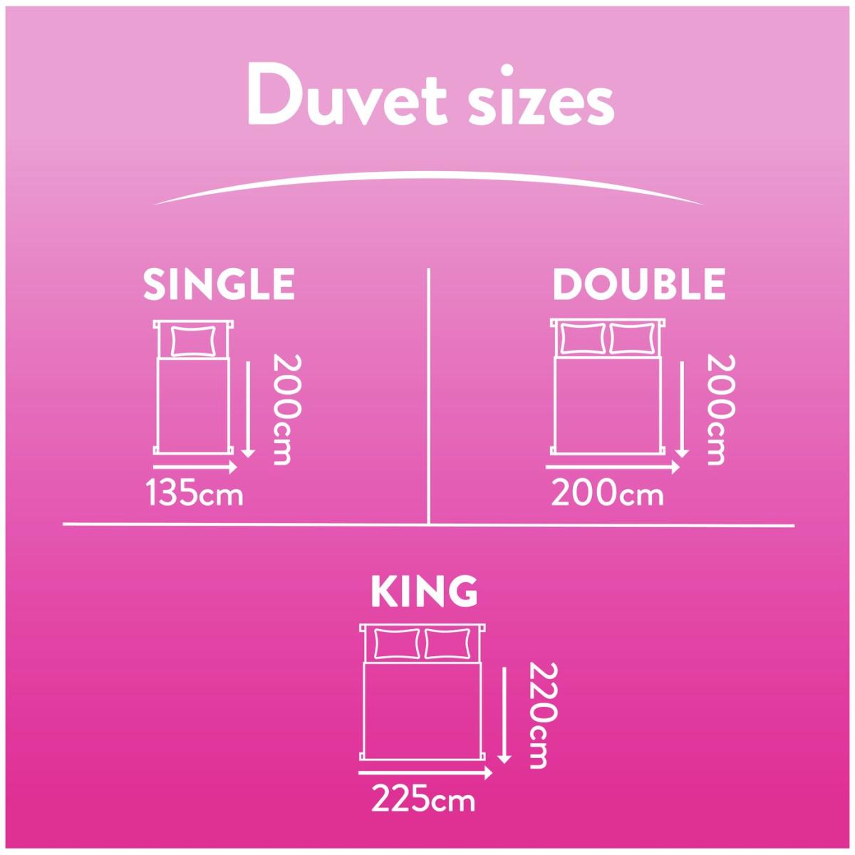At Slumberdown, we believe everybody deserves a better night sleep. The Slumberdown Soft and Huggable range has been created especially for everyday use. This 10.5 Tog Duvet is perfect for all year-round use. The soft touch cover is wonderfully huggable ensuring you stay perfectly cosy all night. What's more, the product is Easy Care which means its machine washable and can be tumble dried. Super king duvet. 10.5 tog duvet. Cover made from 100% polyester. Filling made from 100% polyester. Size L220, W260cm. Machine washable. Suitable for washing in a standard size washing machine. Suitable for tumble drying. Non-allergenic.
