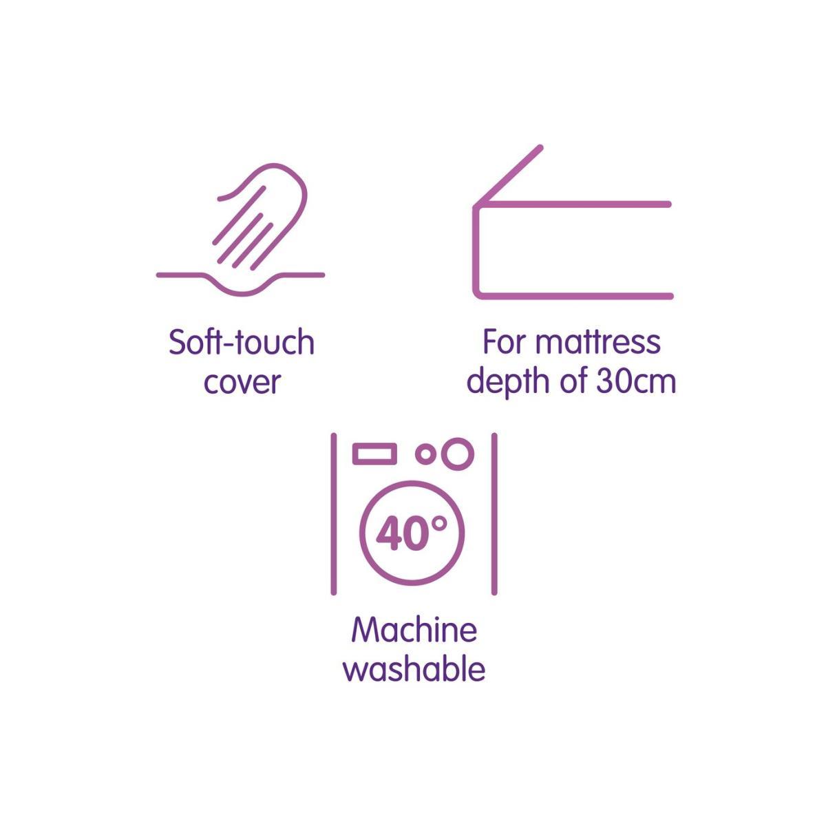 The Soft & Huggable range has been created especially for everyday use. The soft touch quilted mattress protector extends the life of your mattress by protecting it from stains and sweat. The protector has a low fill weight and fits to your bed using reinforced elasticated straps. Whats more its Easy Care which means its machine washable and can be tumble dryed.