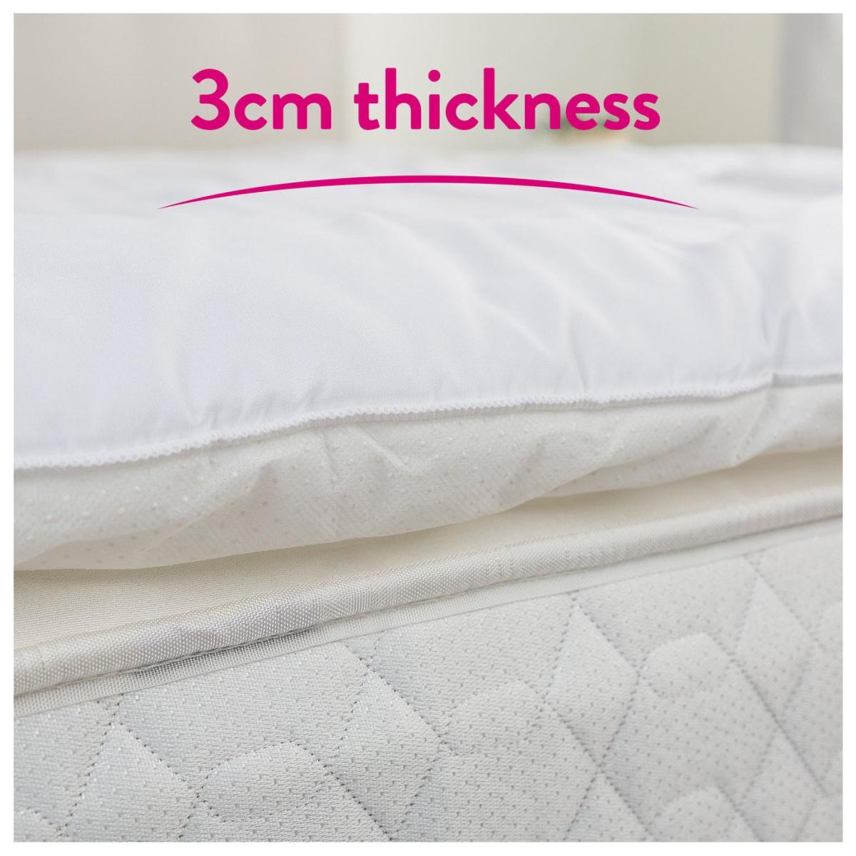 At Slumberdown, we believe everybody deserves a better night sleep. The Slumberdown Soft and Huggable Topper has an anti-slip reverse which means it can be used on the main bed, sofa beds, camp beds, guest beds etc so you can sleep soundly in and out of the home. A topper not only helps protect your sleep space from sweat and stains, it adds a breathable layer to your bed which can help keep you cool in the summer and provides additional insulation in winter. What's more, the product is Easy Care which means its machine washable. Suitable for double beds. Size L190, W135, D2cm. Cover made from 100% Polyester. 100% Polyester reverse. 100% Polyester filling. Non-allergenic. Cover is machine washable.