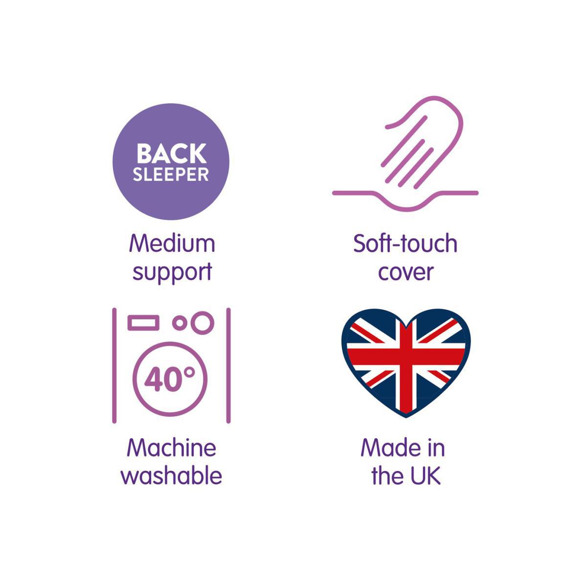 The Slumberdown Soft and Huggable range has been created especially for everyday use. The soft touch cover and fibre gently supports your head and neck, ensuring you wake up refreshed. The pillow offers Soft/Medium support which is ideal if you sleep on your front or back, whats more the product is Easy Care which means it's machine washable and can be tumble dryed.