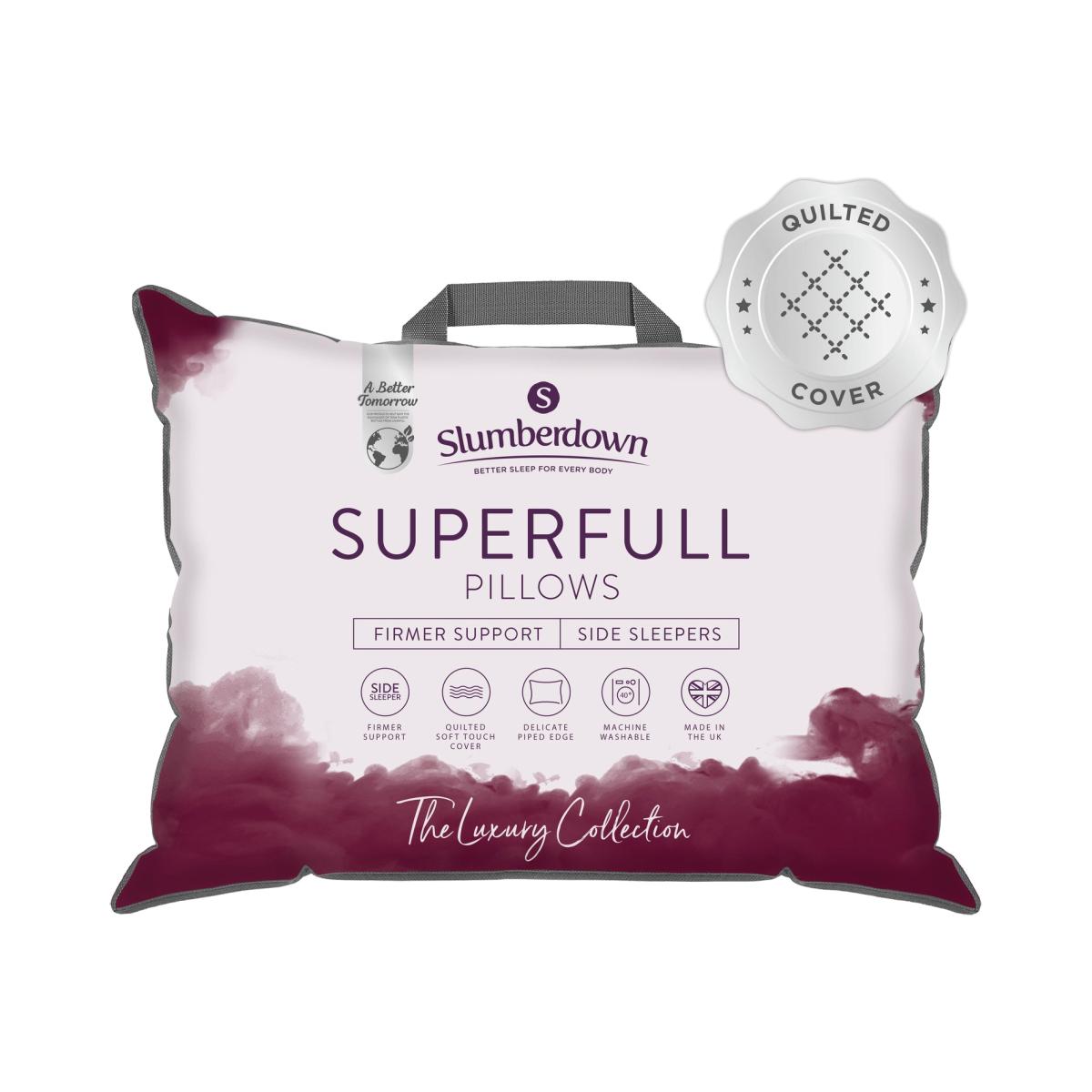 At Slumberdown, we believe everybody deserves a better night's sleep. The Slumberdown Superful Pillow has been designed to provide additional support for your head and neck. This pillow has a soft touch quilted cover designed to provide additional comfort. The increased fill is ideal for those that need extra support whilst they sleep, its also great for those that like to sit up in bed, due to the increased support. What's more, the product is easy care which means its machine washable and can be tumble dried. Pack quantity: 1. Cover made from 100% polyester. Filling made from 100% polyester. Firm pillow. Suitable for back & side sleepers. Size L74, W48cm. Machine washable. Suitable for tumble drying. Non-allergenic.