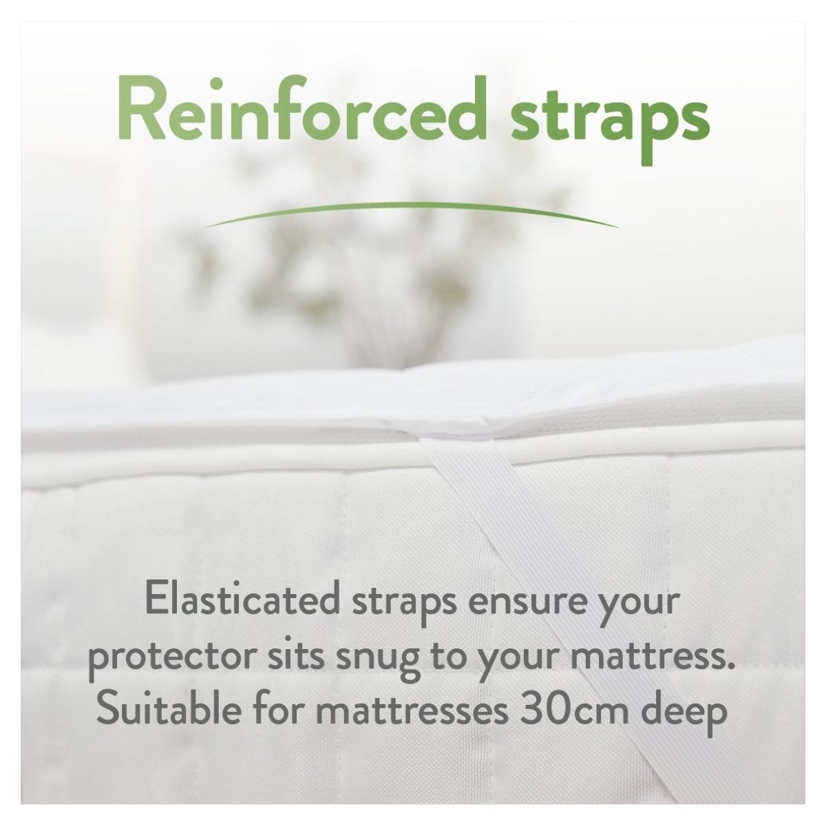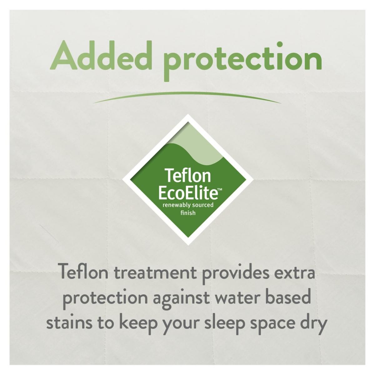 The Slumberdown Teflon Protection range has been designed to provide extra protection for your mattress. The soft touch Teflon cover protects your mattress from sweat and ensures that stains can be wiped away before they leak onto your mattress. This quilted mattress protector has a medium fill weight and fits to your bed using reinforced elasticated straps which fit a mattress depth up to 30cm. Whats more its Easy Care which means its machine washable. Supersoft cover. Quilted protector. Teflon protects and extends the life of your mattress as stains and spills can be wiped away. Suitable for double beds. Non-allergenic. 100% polyester microfibre, Teflon coated cover. 100% hollowfiber filling. Secured by elasticated corner tapes. Machine washable at 40 C.