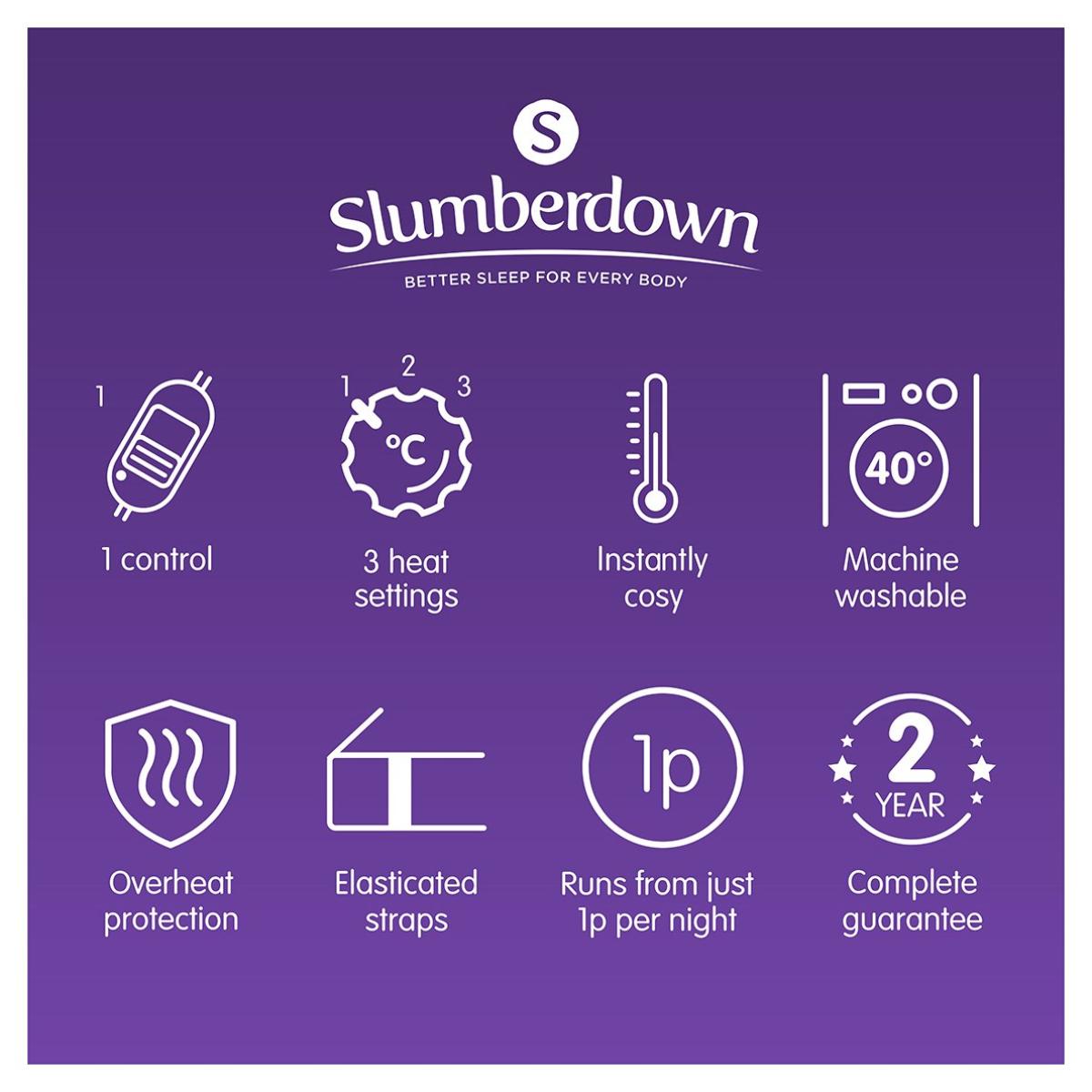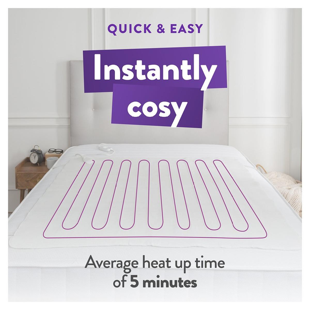 This blanket has a soft touch quilted cover which adds a layer of comfort to your bed. Whats more the comfort layer can be zipped off rather than taking off the full blanket, which means its easy care. The reinforced elasticated straps run the full width of your bed ensuring it stays in place night after night. Its easy to use with 3 x heat settings, that can be set for your ideal time period. It's machine washable, has a low energy consumption and automatic shut off to prevent overheating, giving you complete peace of mind.