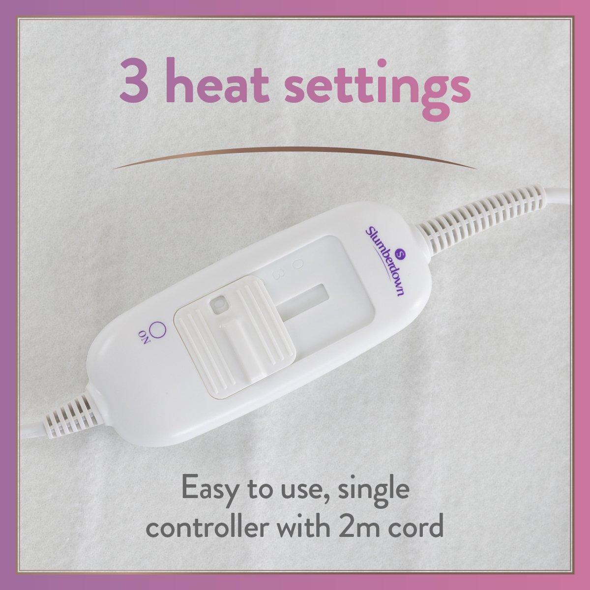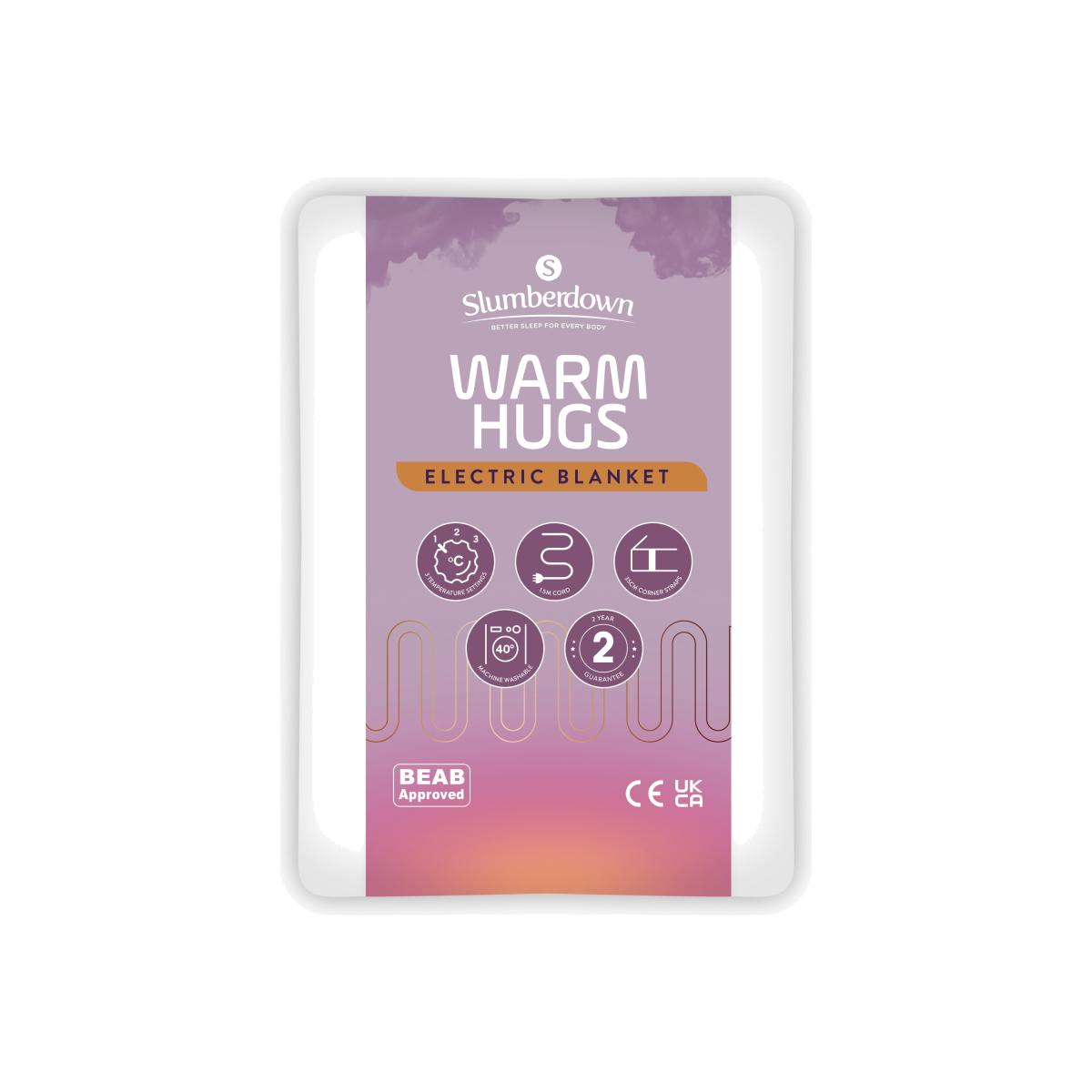 Keep yourself warm all night long with the Slumberdown Warm Hugs Electric Blanket. This soft touch electric blanket is easy to use. It comes with a host of benefits such as: full length reinforced elasticated straps. 3 x heat settings allowing you to achieve the perfect temperature. The controller is fully detachable, so it's machine washable. The blanket can be used all night long as it has a low energy consumption, with av, run costs of 1p per night. It also comes with a 2 year guarantee, giving you complete peace of mind.