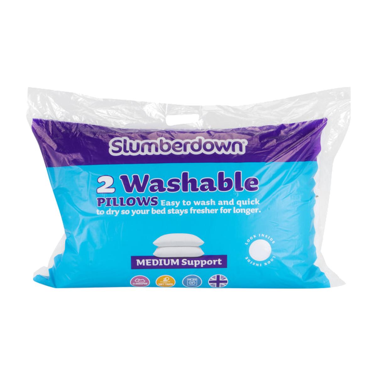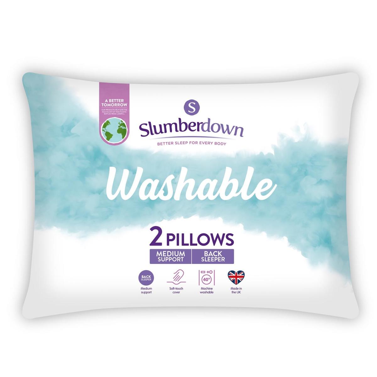 Providing medium support while you sleep, these non-allergenic Slumberdown Washable Pillows are soft to touch with a microfibre cover and light, 100% recycled polyester fluffy filling. Their extra durable and sustainable design means they can be machine washed and tumbled dried for that freshly made bed feel night after night.