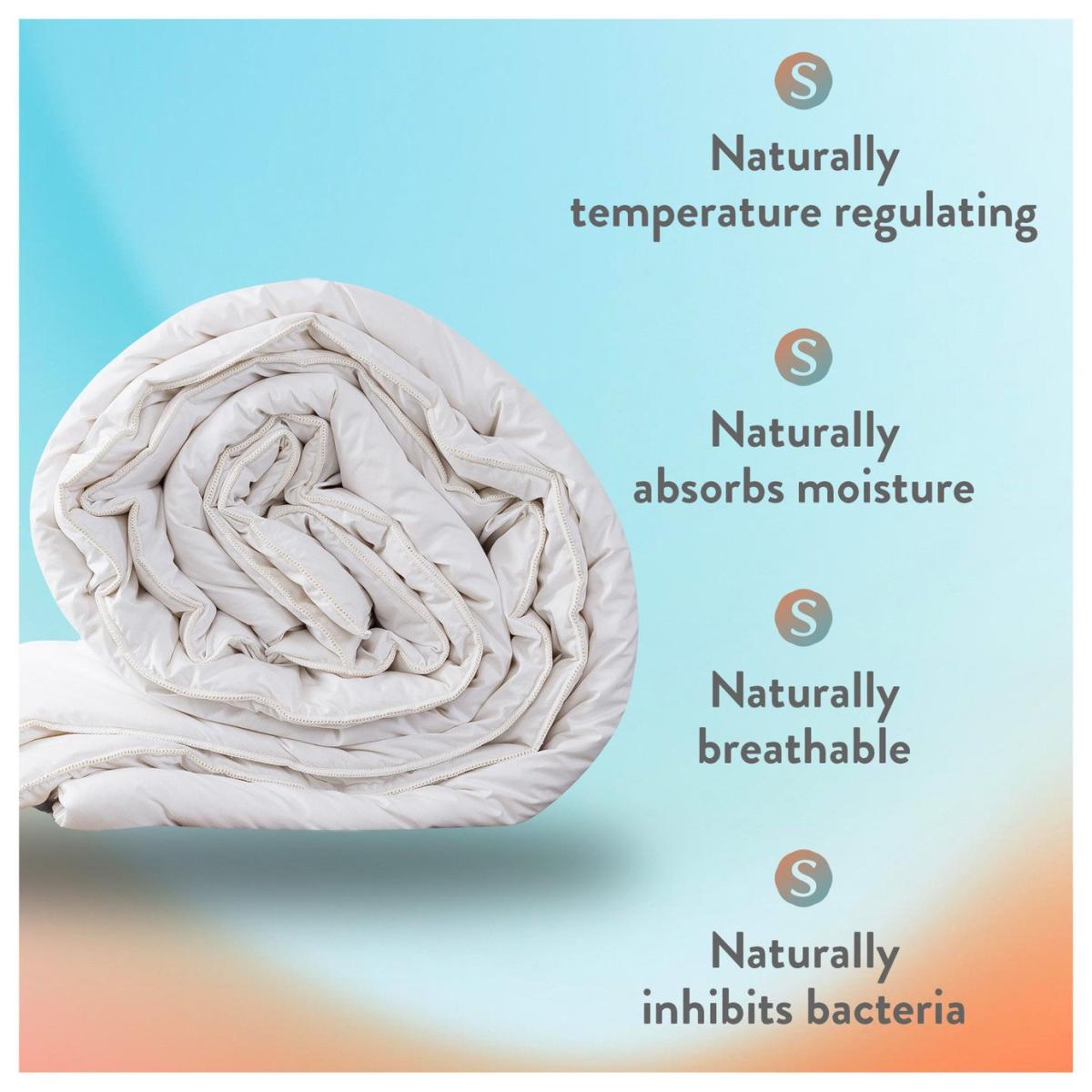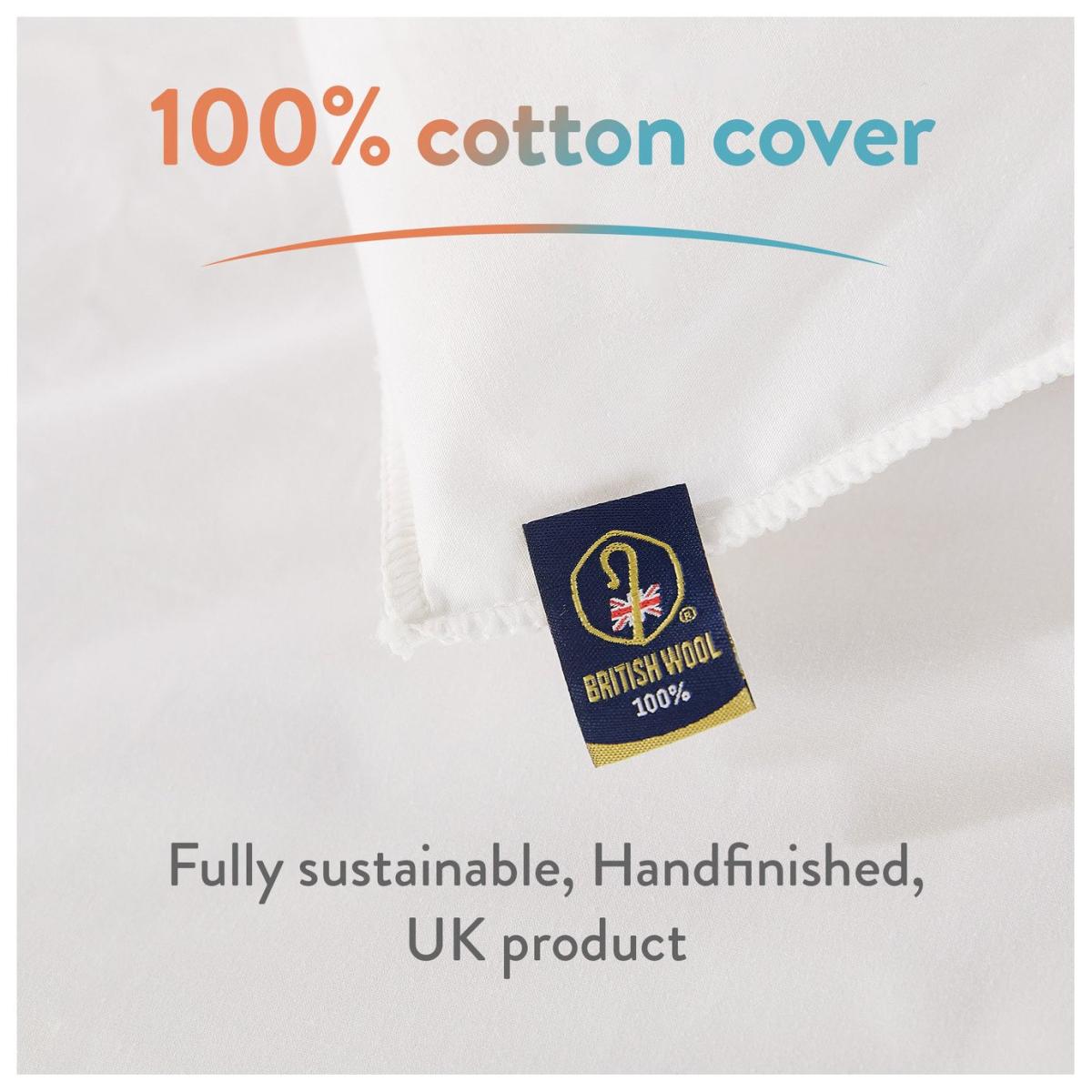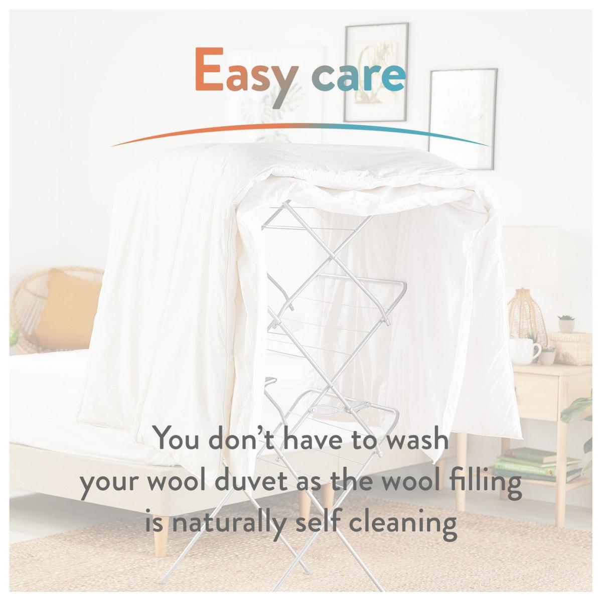 At Slumberdown we believe everybody deserves a good nights sleep. The Slumberdown Wonderful Wool medium weight duvet has a soft 233 thread count cotton cover and is filled with our beautifully soft 100% British wool. Wool is temperature regulating allowing you stay cool in the summer and warm in the winter, making it perfect for any season. The duvet is fully breathable, offers anti allergy, anti bacterial protection and its hypoallergenic. What's more the duvet is self-cleaning so a regular airing will keep it fresh. Made in the UK. Double duvet. Cover made from 100% cotton percale. Filling made from 100% wool. Size L200, W200cm. Anti-allergy.