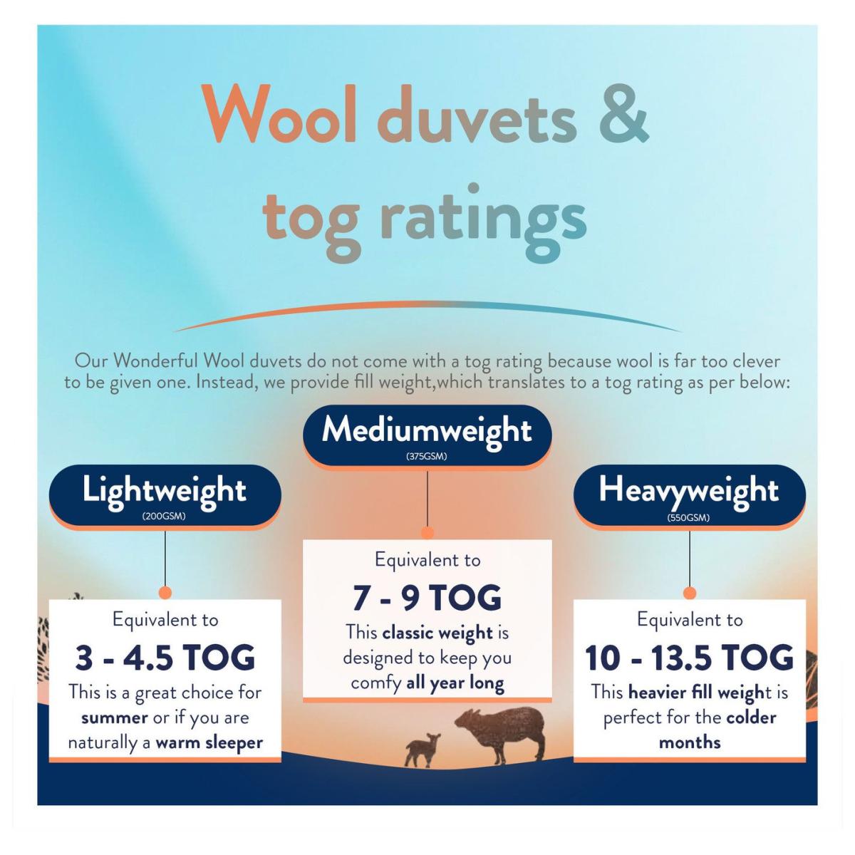 At Slumberdown we believe everybody deserves a good nights sleep. The Slumberdown Wonderful Wool medium weight duvet has a soft 233 thread count cotton cover and is filled with our beautifully soft 100% British wool. Wool is temperature regulating allowing you stay cool in the summer and warm in the winter, making it perfect for any season. The duvet is fully breathable, offers anti allergy, anti bacterial protection and its hypoallergenic. What's more the duvet is self-cleaning so a regular airing will keep it fresh. Made in the UK. Single duvet. Cover made from 100% cotton percale. Filling made from 100% wool. Size L200, W135cm. Anti-allergy.